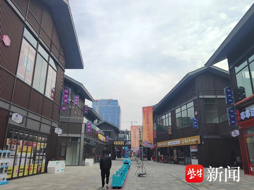 当天的开业现场,因疫情原因顾客并不算多,但是项目整体干净整洁,已开业的店铺内部也都井然有序正式营业。整个项目沿水而建,河面上有九里仓标志性的两桥一塔建筑,两桥分别命名为“跨凤桥”、“乘龙桥”,寓意见证爱情;塔命名为“吉祥塔”,寓意龙凤呈祥。