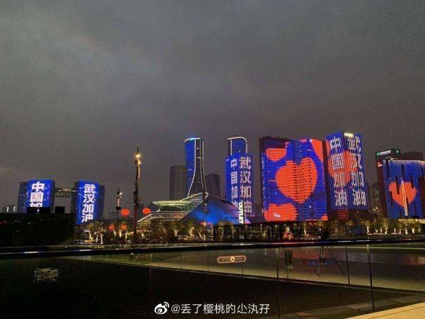 元宵佳节,深圳亮起一场灯光秀,为武汉加油 图片来源:@不做蝜蝂的白丁
