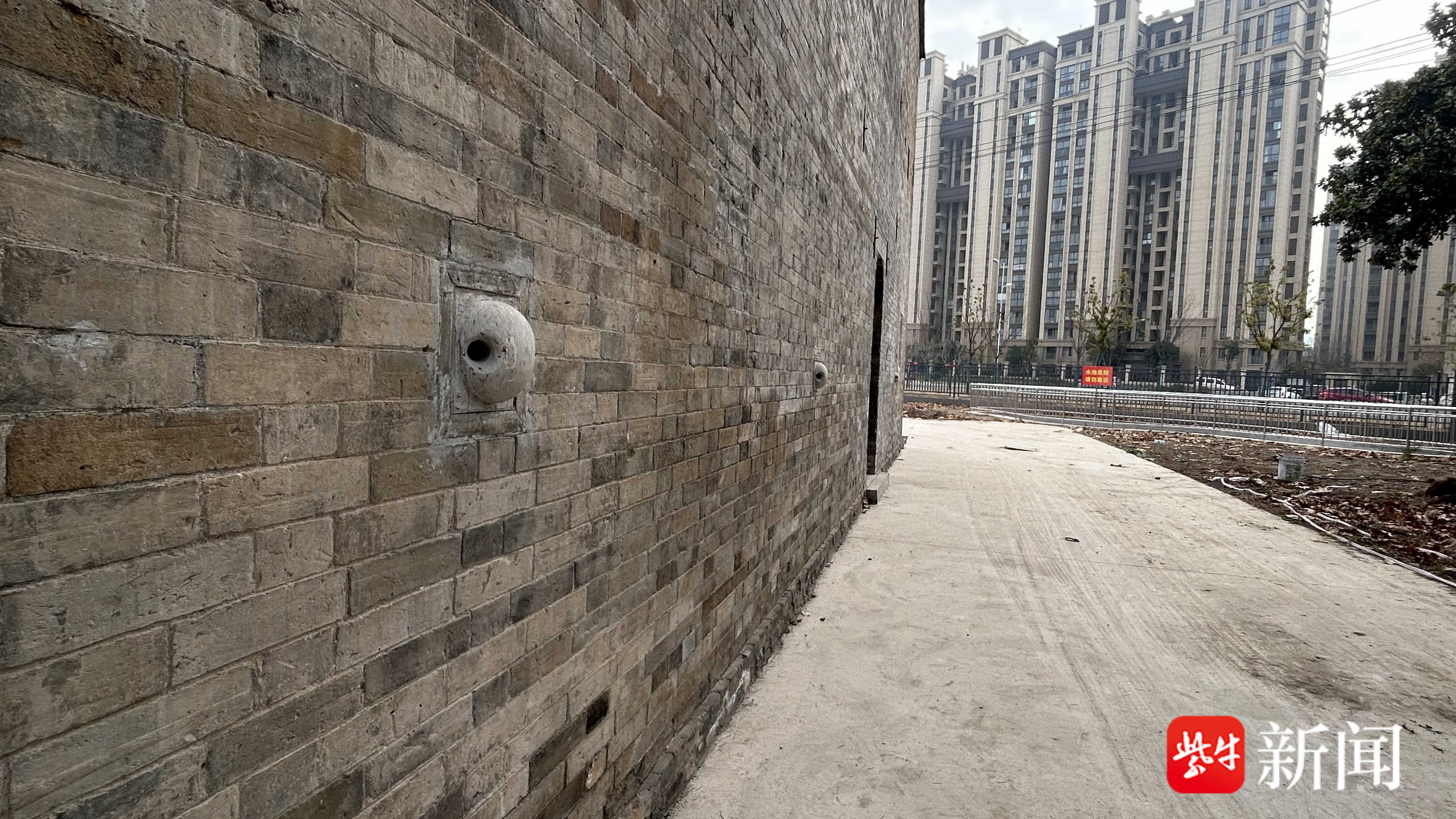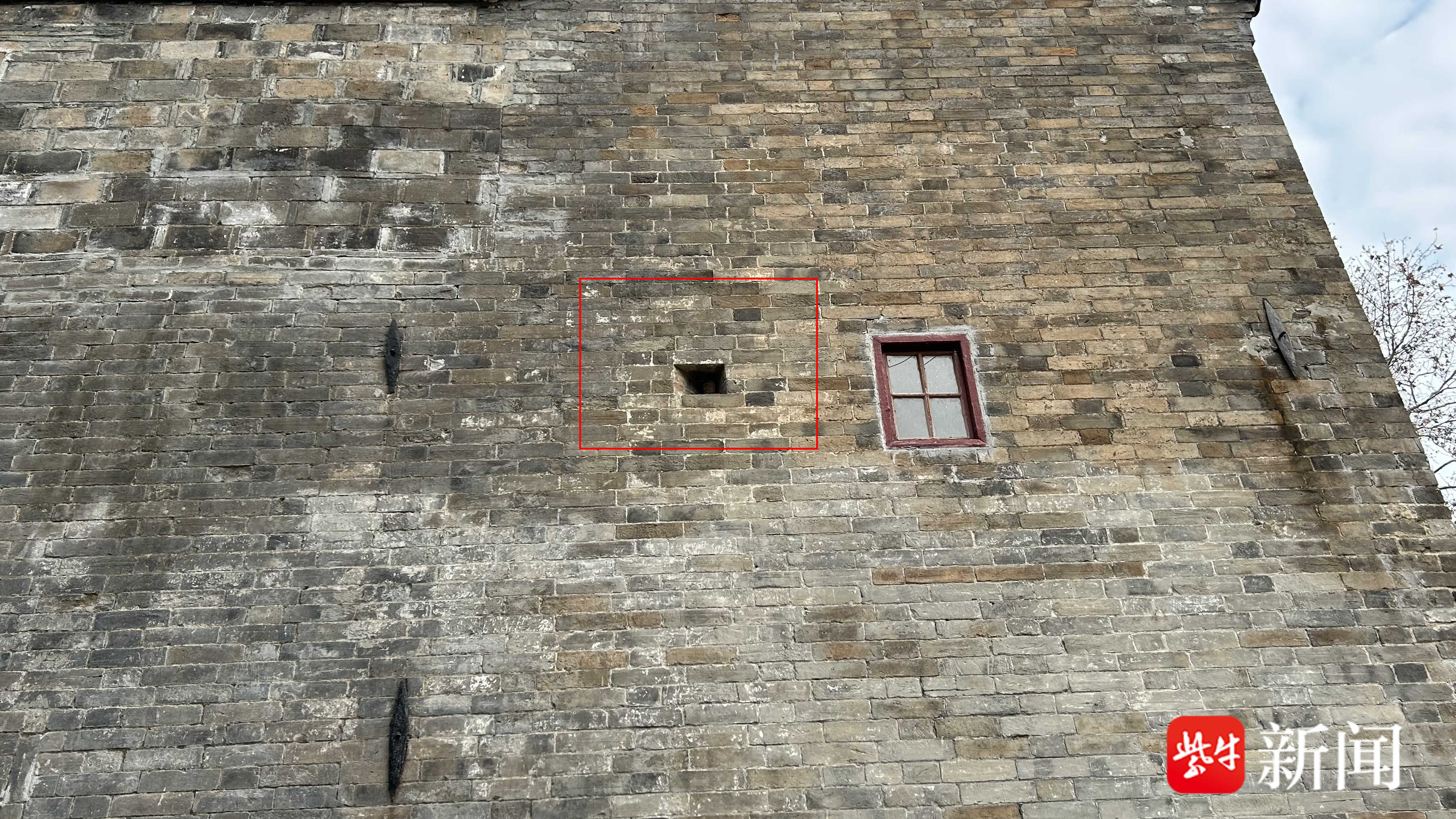 与南京城南常见的近代江南民居迥然不同,这座大宅院具有鲜明的军事防御特征。记者注意到,建筑四面是约6米的高墙,上面开有多个小窗和射击孔。其南墙更是略高出一截,墙后有一处平台,墙上同样有密集的多个窗孔,可供射击。同时,在建筑立面上还嵌有多个石质拴马扣。
