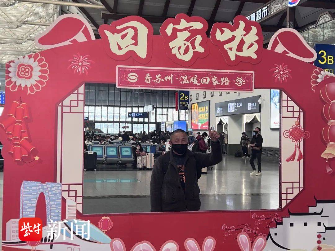 50多岁的赵师傅归心似箭,距离发车还有7个小时,他一早就赶到了苏州火车站候车大厅。“老婆孩子都在老家,都盼着我回家团圆呢!”老赵在工地上打工,一年就回一次家,今年工地上的活一忙完,就收拾行李买票回家。坐20小时的火车,就能到老家甘肃天水了。“今年可以在家多待10天,一家人团圆是最开心的。”