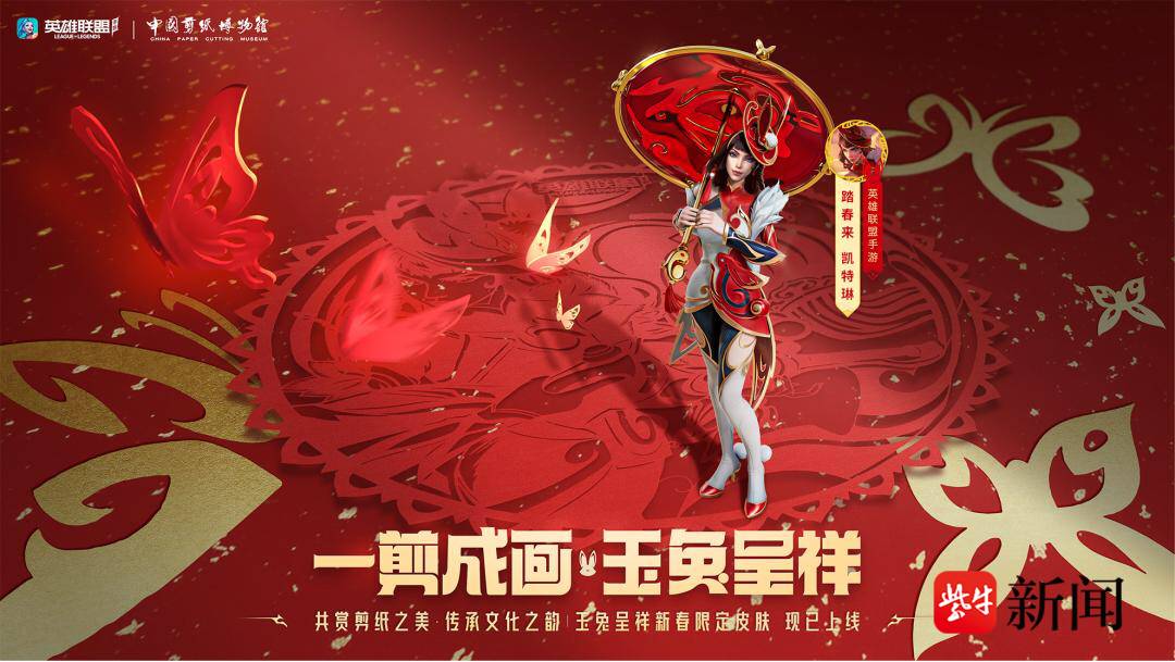 扬子晚报网1月17日讯(通讯员 运投轩 记者 陈咏)一剪成画,玉兔呈祥。记者17日从扬州获悉,为创新表达方式,让全球“Z世代”群体更好感受中国非遗文化魅力,由扬州运河文投集团旗下的中国剪纸博物馆与《英雄联盟手游》共同推出的“玉兔呈祥”剪纸版新春主题皮肤,已在手游平台正式上线。