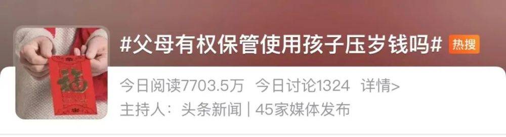 最近,#父母有权保管使用孩子压岁钱吗#上了热搜,网友评论,如何教会孩子管理压岁钱才是对家长真正的考验。