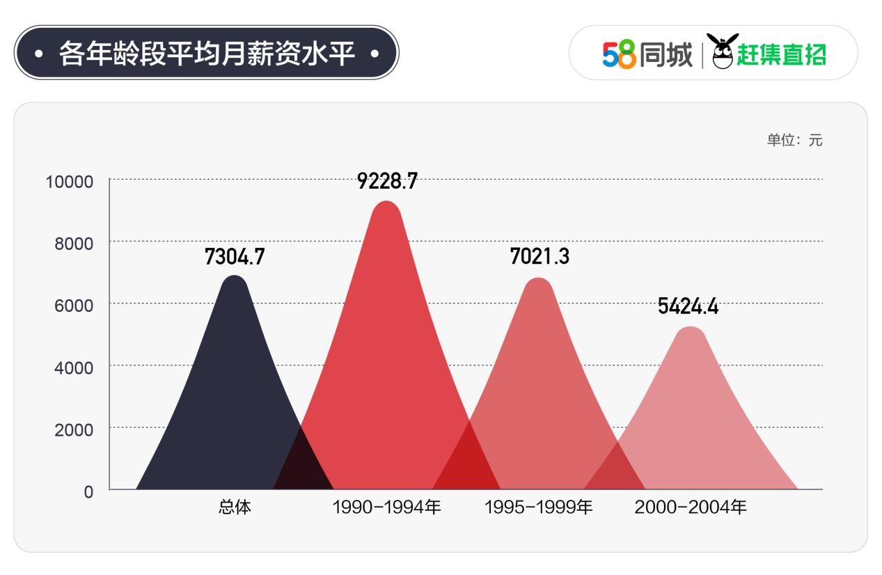 58同城、赶集直招发布的《2023年返城就业调查报告》显示,在薪资分布上,1990年-2004年从业者群体,月平均工资为7304.7元,90后平均月薪资主要集中在5001-8000元,00后则主要集中在3001-5000元。其中,90-94年月平均工资最高,为9228.7元,其次是95后,月平均工资为7021.3元,00后月平均工资为5424.4元,可见薪资水平与工作经验成正比,90-94年踏入职场时间更长,普遍薪资较高。