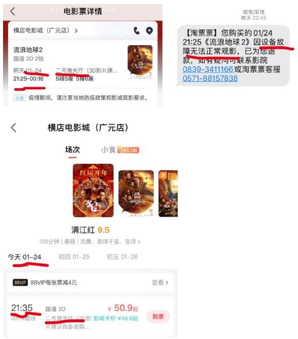 中消协表示,今年春节文化娱乐消费内容丰富,多部影片在春节档上映,收获票房收入的同时也引发舆论关注。四川广元某影院因设备故障将《流浪地球2》改播《满江红》,对于“换片”的相关质疑引起舆情热议。
