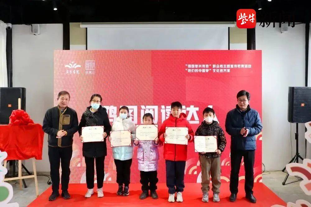 活动现场还举行了“鸿图阅读达人”颁奖仪式,本次鸿图阅读达人是通过抓取2022年图书馆内借还书频次最高家庭的数据为依据,借助于此,希望更多居民能与经典为友,与博览同行,让阅读成为生活的一部分,营造书香家庭,构建书香鸿山。