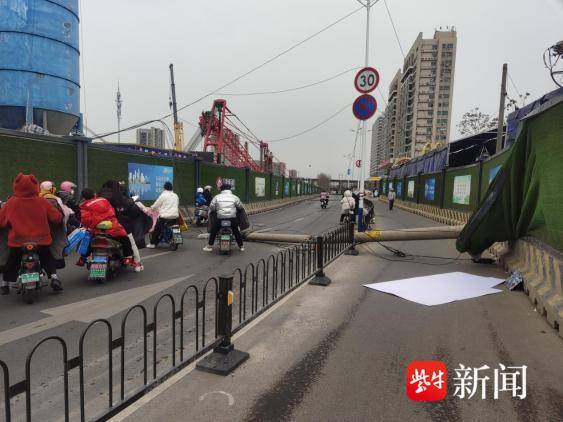 扬子晚报网2月6日讯(通讯员 孙韦 记者 张可)近日,位于南京江北新区浦珠北路上的一根电线杆突然倒塌,横跨了非机动车道和大半幅机动车道,现场情况十分紧急。江北新区泰山街道综合执法大队巡查队员迅速处置,及时消除隐患,得到了往来市民的纷纷点赞。