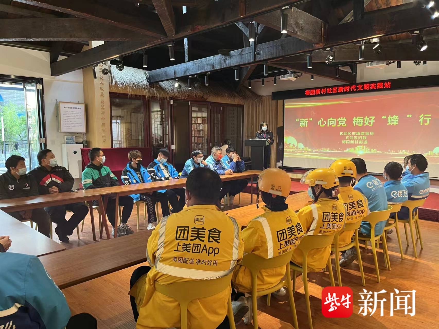 南京玄武:外卖骑手来到社区党员冬训基地