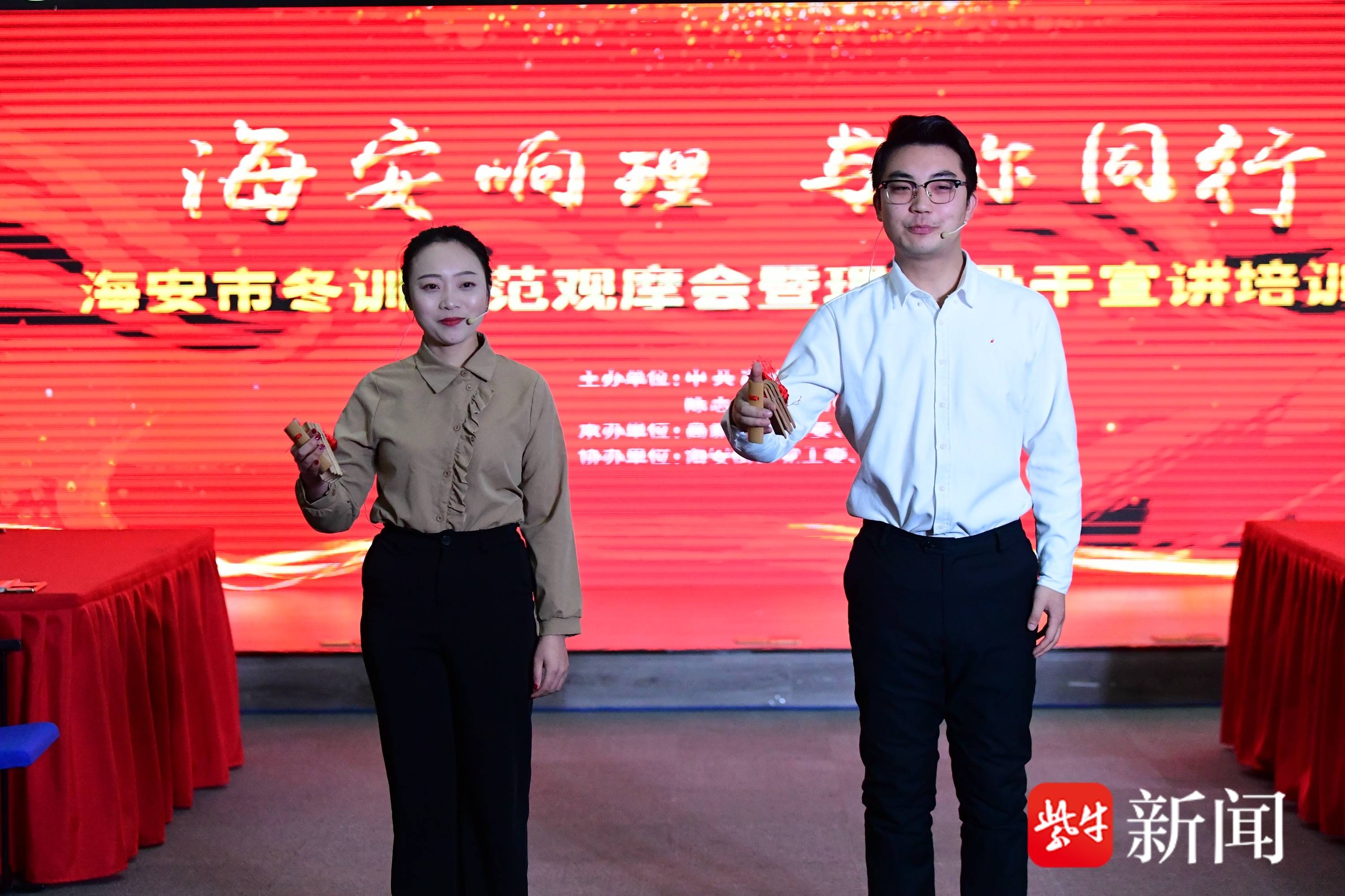 头雁领航,群雁齐飞。为丰富基层党员冬训内涵,切实推动党的二十大精神深入基层、深入人心,2月11日上午,由海安市委宣传部主办的“海安响理 与你同行”党员冬训示范观摩会暨理论骨干宣讲培训会在高新区科创园举办,海安市委常委、宣传部部长卢林出席活动。全市各区镇街道政工书记、宣传委员、宣传干事以及“百姓名嘴”班学员共同观摩了党员冬训“五个一”示范展示,包括“观看一段习近平总书记重要讲话原声视频、欣赏一个理论文艺节目、展示一次理论微宣讲、进行一场‘云地同频 理论连线’活动、阐述一段为民办实事成果”五大内容。