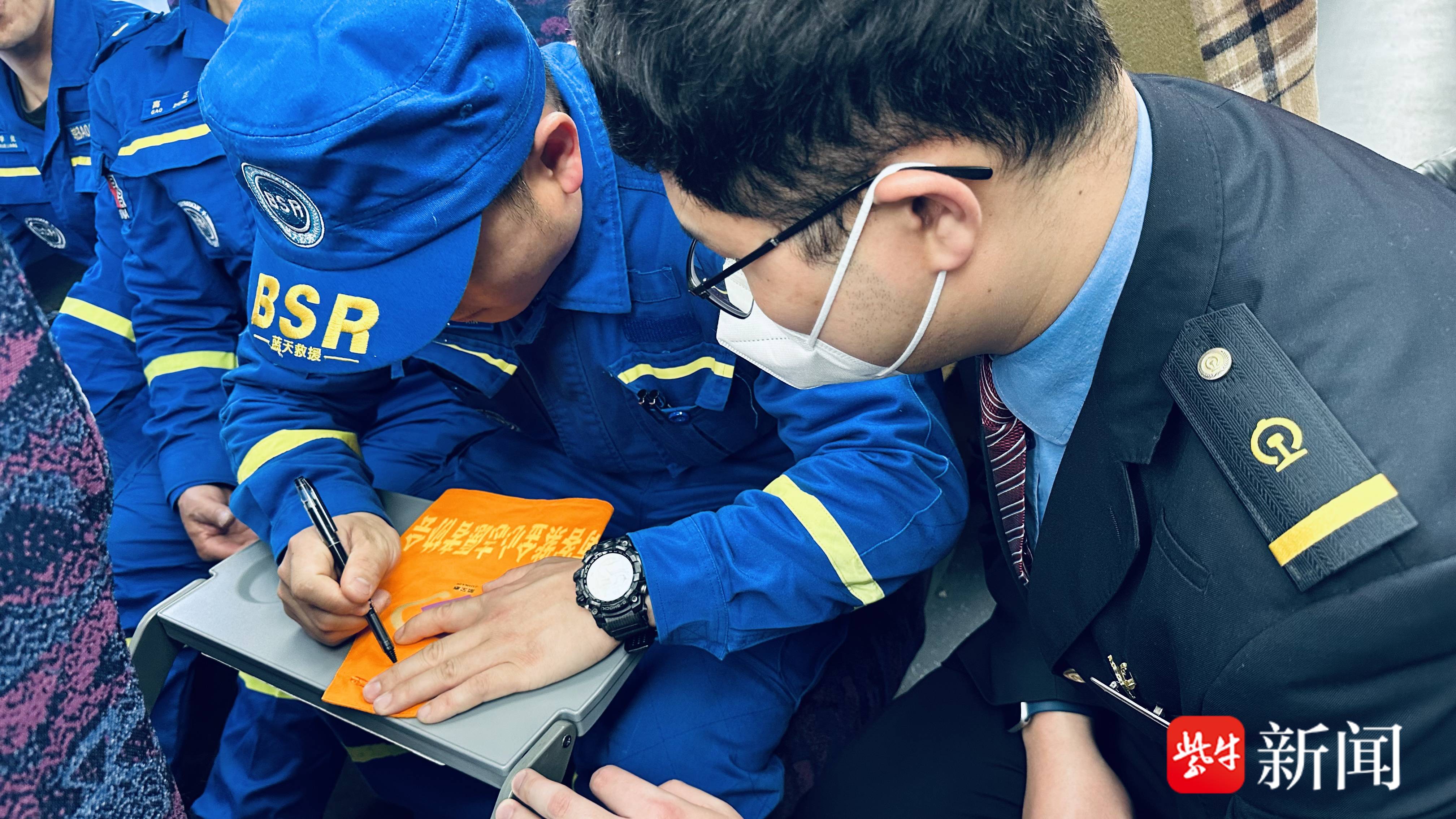 “本次土耳其7.8级地震,芜湖蓝天救援队第一时间响应,于2月7日下午出发,这是芜湖蓝天救援队参与的首次跨国救援,共与队友们挽救生还者3人,挖掘遇难者遗体43人........”芜湖蓝天救援队副队长李鑫向志愿者代表讲述了在土救援的故事。在得知紫金心志愿协会的志愿者们都以他们为榜样后,四位勇士在南客紫金心志愿者协会的臂章上留下签名,鼓励大家要将志愿救援精神传递下去。