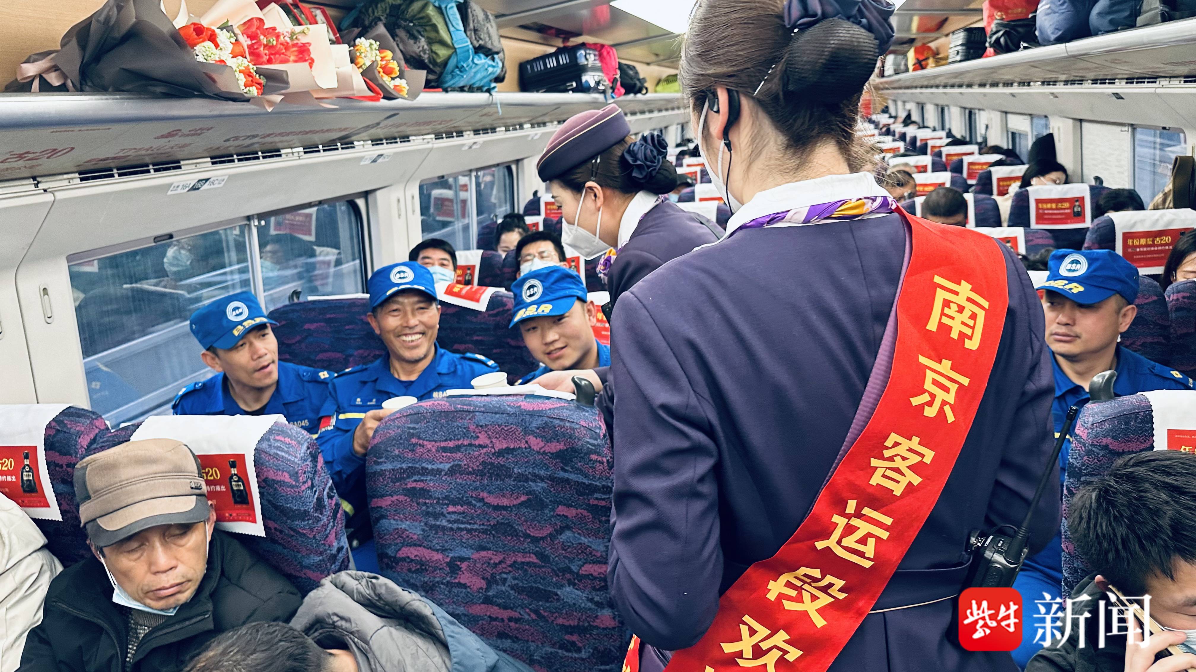 南京客运段紫金心志愿者协会的志愿者们在听闻勇士即将乘高铁返程后,也派出了代表。“欢迎英雄回国!我们的志愿者们都非常想听听你们这次国际救援任务的故事,可以为我们讲述一下嘛?”列车长唐睿激动的说到。