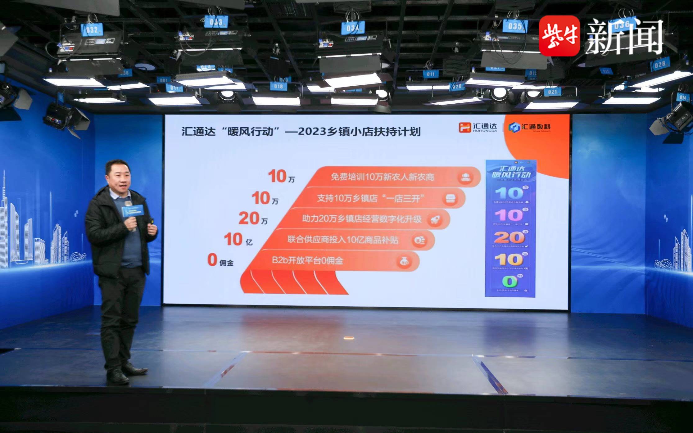 汇通数科智能科技有限公司数字化业务总经理郝鹏则向与会者介绍了汇通达近期发布的“暖风行动・2023年乡镇小店扶持计划”,以数字技术帮助乡镇小店智慧化转型升级,包括“免费培训10万新农人新农商”“支持10万乡镇店‘一店三开’”“助力20万乡镇店经营数字化升级”等。