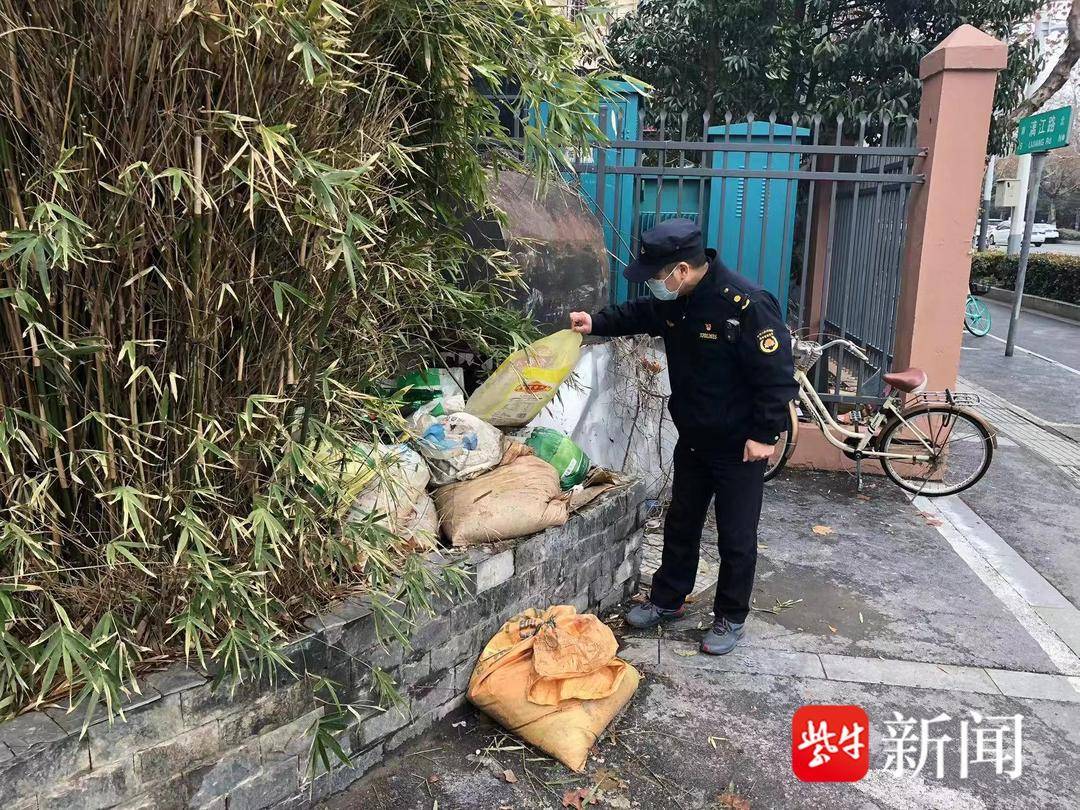 在漓江路某小学周边临街一处花坛内有数蛇皮袋垃圾,城管执法人员打开袋子发现内有餐厨手套及清理下水道垃圾,疑似该餐饮店丢弃物,经走访餐饮店指出被丢弃蛇皮袋内垃圾高度吻合该餐饮店,经店主辨认垃圾,承认系昨日请人清理下水道后遗留,未及时清运堆放。城管执法人员现场对店主进行城管法规教育,门前堆放垃圾违反城管法规、影响市容市貌、且对学生上下学行走有安全隐患,责令该店主切实履行“门前三包”责任消除安全隐患,店主认识了堆放垃圾影响市容市貌及安全的错误,表示立即整改清运垃圾。目前,在城管执法人员的监督下,堆放的垃圾已经清理完毕。同时,对学校周边违规张贴小广告进行清理,非机动车乱停放进行有序规范。