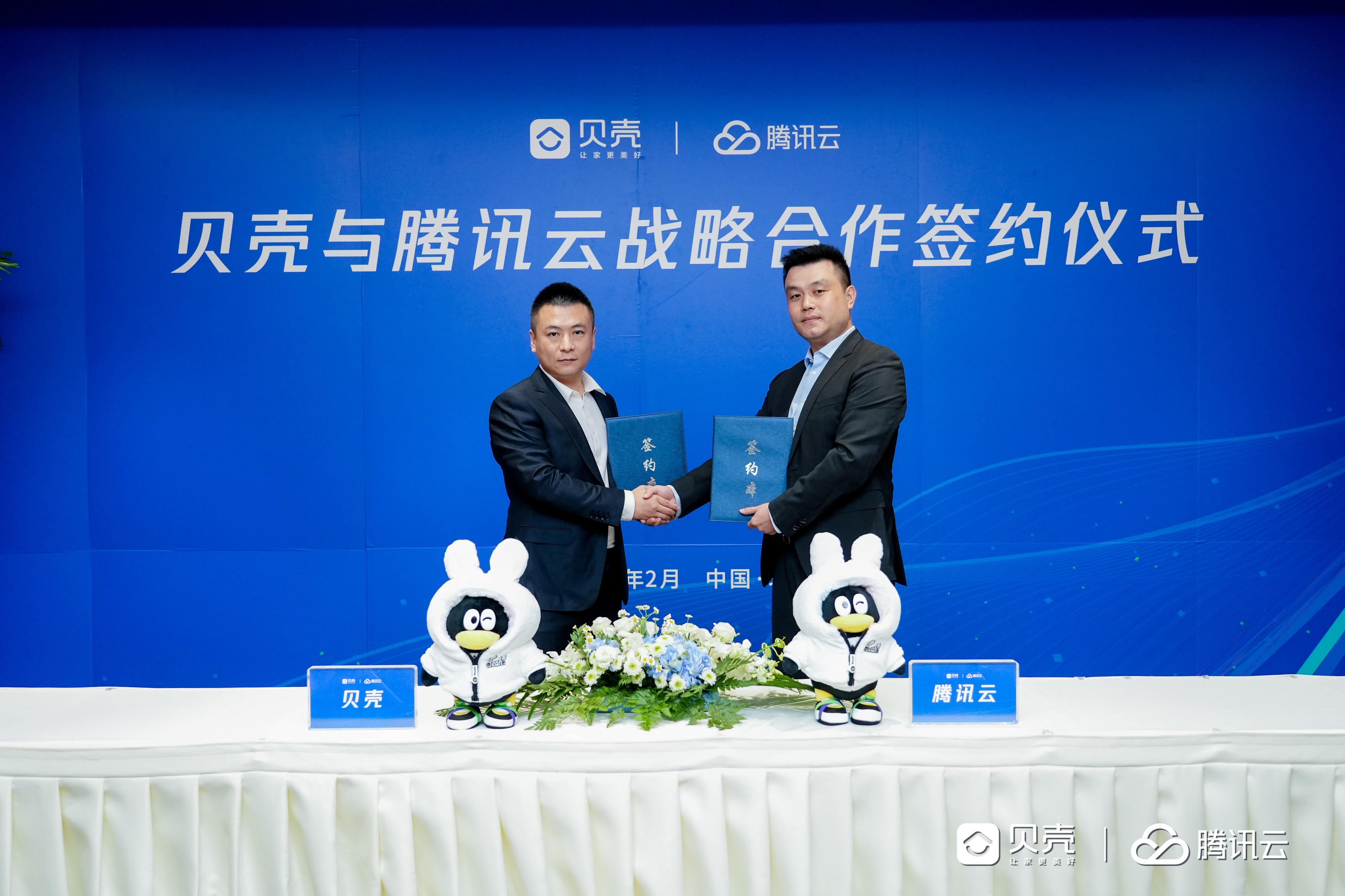 2月22日,贝壳与腾讯云签署战略合作框架协议,就公有云服务展开长期合作。双方将充分发挥各自优势,进一步推动居住服务产业的数智化发展。贝壳基础研发线总经理王超、腾讯云副总裁何海洋等双方代表出席了本次签约仪式。