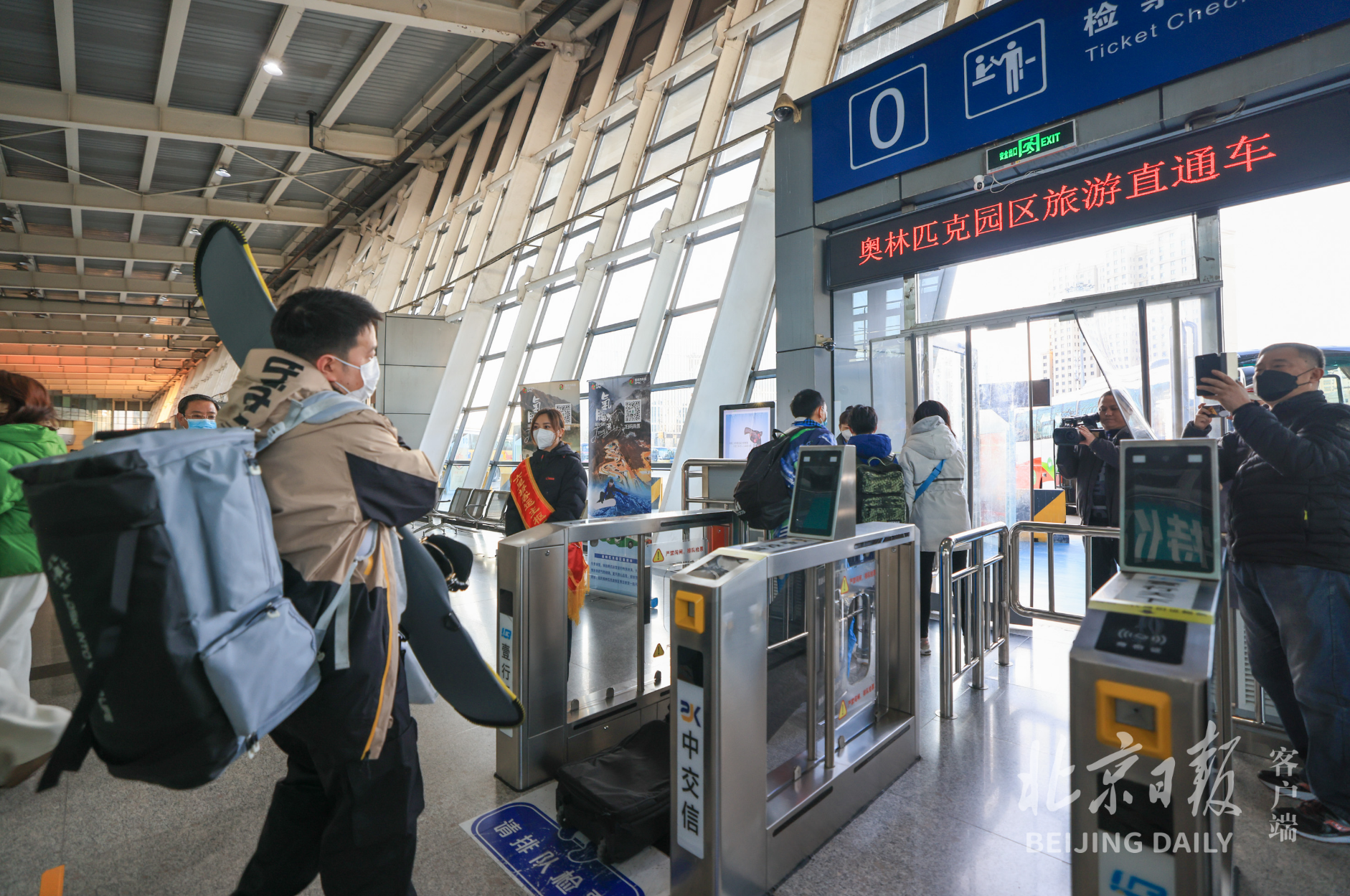 今天早上7时20分,六里桥客运站0号检票口,乘坐首趟旅游新线的旅客们已经排好队,其中不少人穿着滑雪服,脚边是长长的雪具袋。“听说延庆这处雪场落差大,坡度、长度很适合业余选手,特意利用周末来感受一下。”王先生早上刚从武汉抵达北京西站,坐地铁十几分钟就到了六里桥客运站。