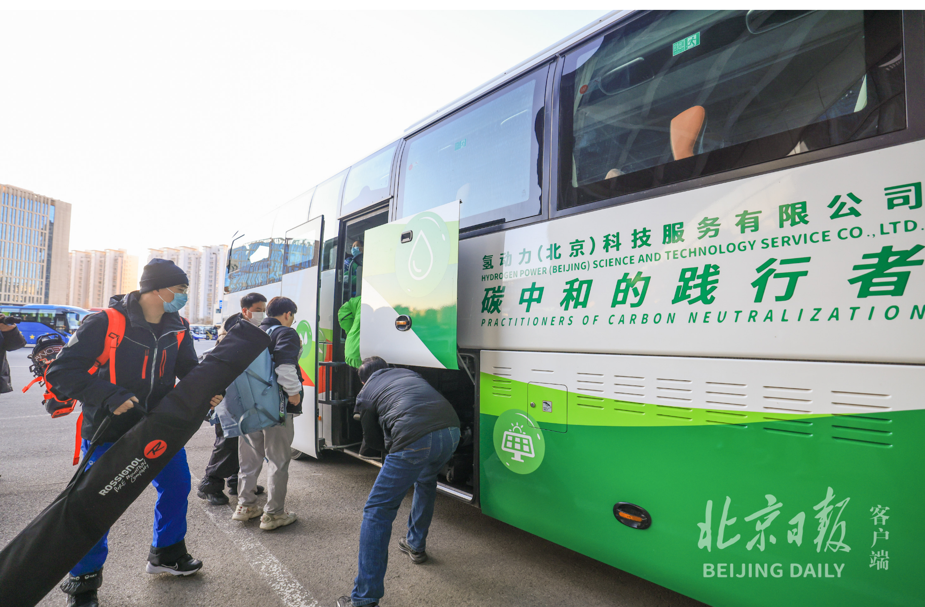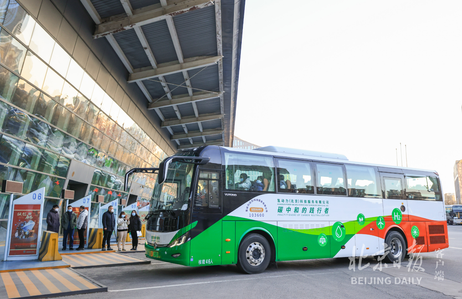 一些旅客还注意到,这辆白绿相间的大巴车车身,写着“碳中和的践行者”。“我们的车和司机,都是服务过北京冬奥会的。氢能源车,实现了零碳,还比电车续航长,加25公斤氢,带电可跑五六百公里。”氢动力(北京)科技服务有限公司运营总监邵杰介绍,目前可投入运营的车辆有200台,随着旅客数量增多,可随时增加发车班次。