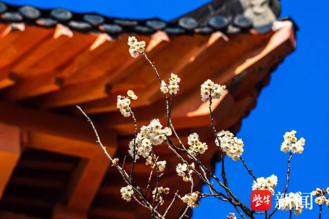 除了樱花,樱洲的樱桃园每年此时也会吸引大量游客前来拍照打卡。樱桃开花,比梅花更轻盈繁茂,摇曳而妩媚,虽没有梅花的庄严,但别有一种属于自己的轻盈和活泼。墨瓦红檐之下,樱桃花花姿烂漫,白色的花瓣层层舒展。据景区工作人员介绍,随着气温持续回升,预计在本周后半段樱桃园将迎来集中绽放,进入最佳观赏期。等到了4月中旬,樱桃园内的樱桃将挂满枝头,郁郁葱葱的樱桃树间,一个个红若玛瑙的樱桃点缀其中,让人看了赏心悦目。