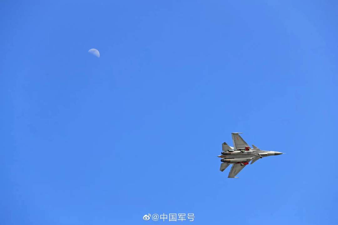 近日,海军航空大学某基地组织飞行训练。多架歼-15战机依次呼啸升空,与空中的月亮同框。“飞鲨”逐月海天间,一起看战机翱翔的浪漫瞬间↓↓