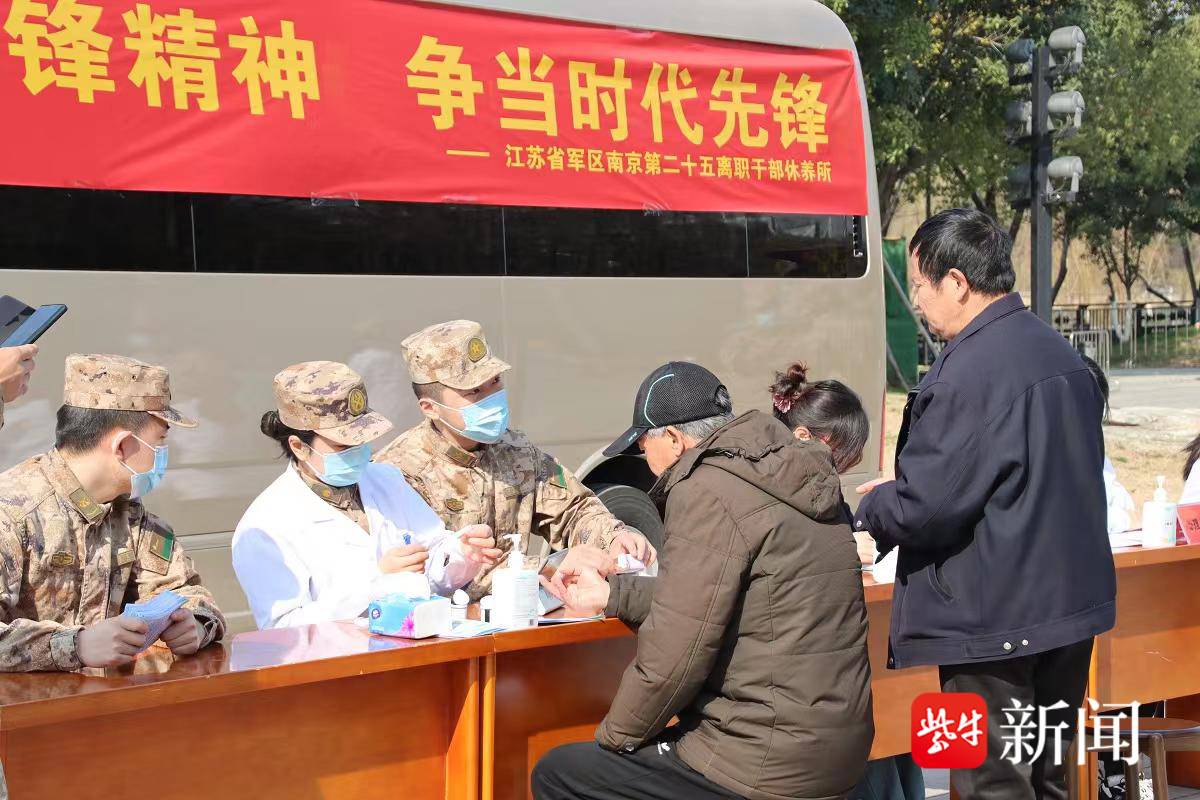 江苏省军区南京第一离职干部休养所免费为问诊的居民测量血压、血糖,就如何预防常见病和多发病提出相关意见建议;南京第三离职干部休养所充分利用所内人才和资源优势,走进社区开展爱心查体和健康咨询服务;南京第十六离职干部休养所现场指导居民如何使用家用医疗器械,提供预诊分诊等服务;南京第十九离职干部休养所走进金色阳光养老院,问诊的同时为老人发放春季常见疾病预防办法宣传册;南京第二十四离职干部休养所关注孤寡老人和弱势群体健康咨询,指导合理用药;南京第二十七离职干部休养所通过“望闻问切”诊断病情,为居民提供健康指导;南京第三退休干部休养所与南京市鼓楼区华侨路街道退役军人服务站联合开展“弘扬雷锋精神,文明实践随行”义诊活动。