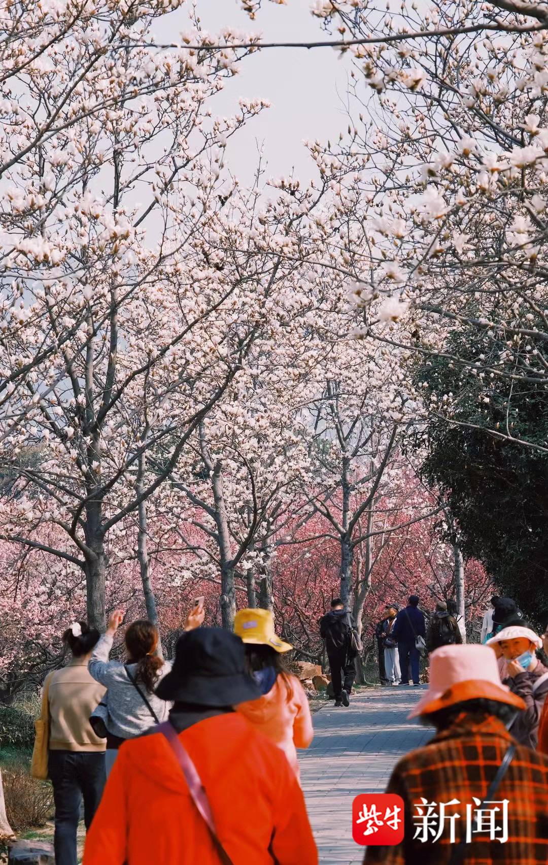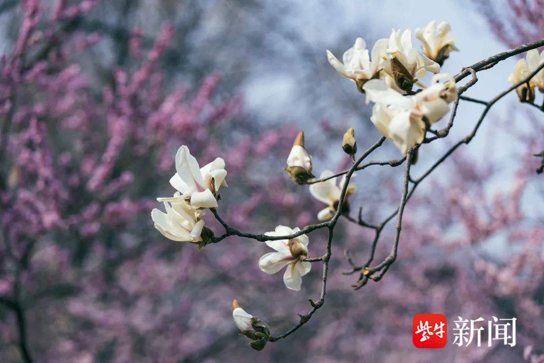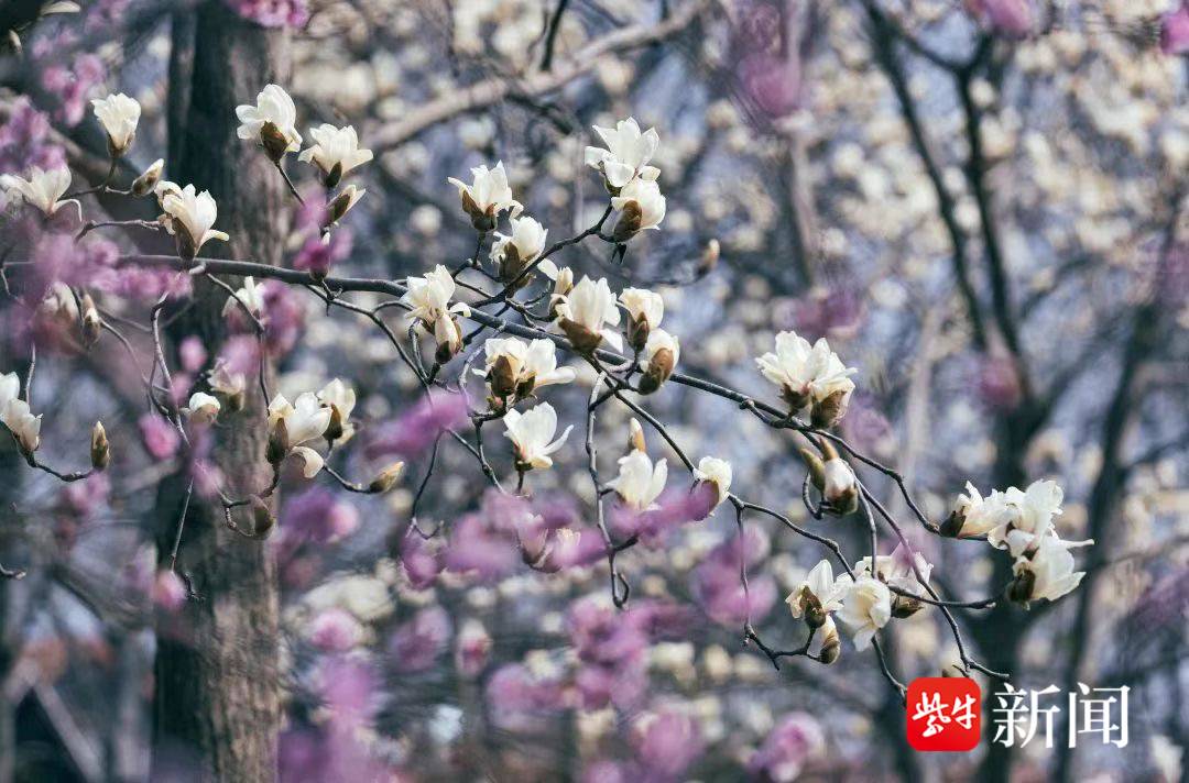 据介绍,钟山风景区的白玉兰主要分布在明孝陵景区梅花谷,尤以玉兰路两侧列植白玉兰较成规模,玲珑剔透的白玉兰与娇艳欲滴的杏梅相映成趣,展现春天的热烈。