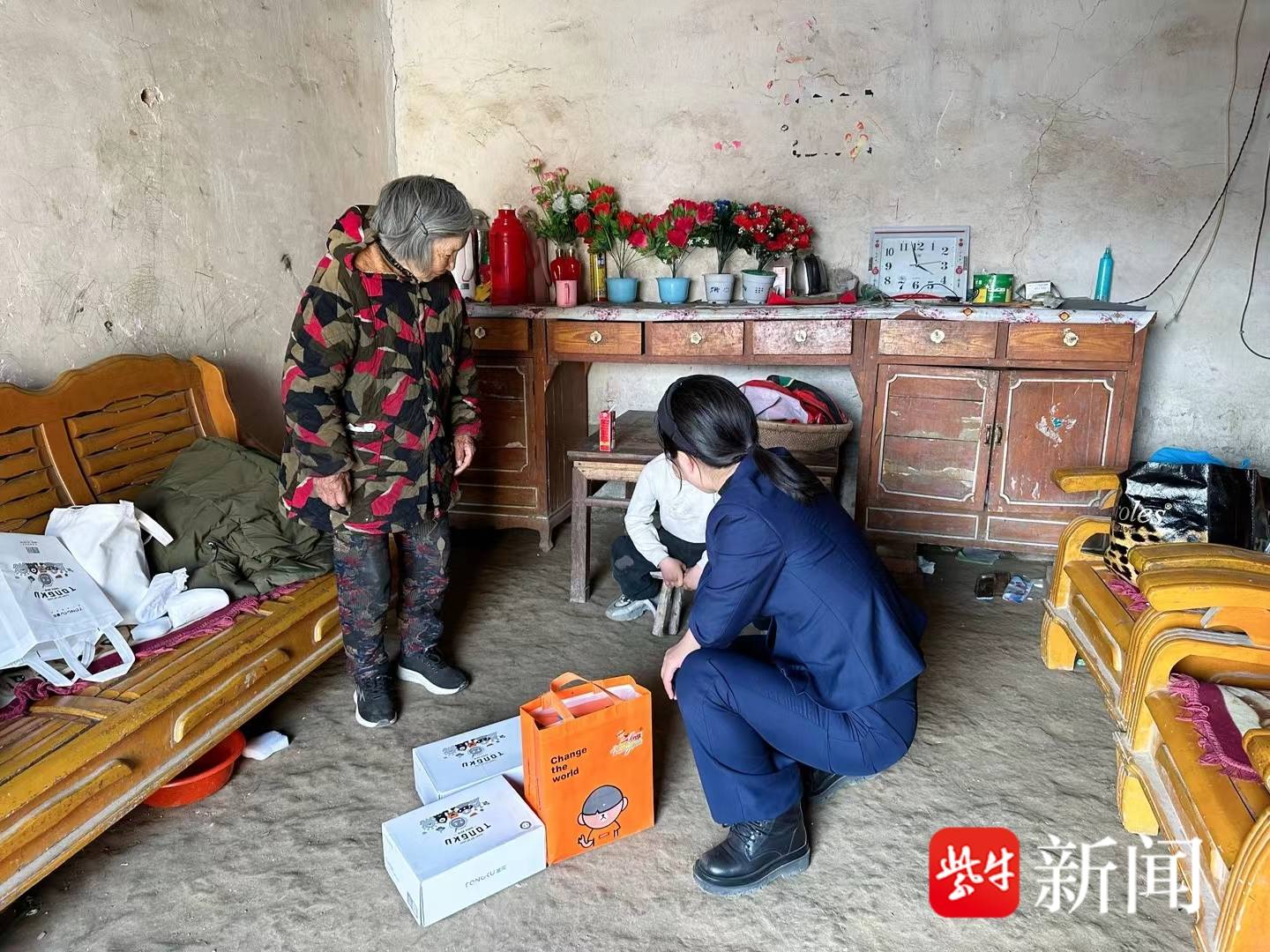 孤儿小峰(化名)的父亲和爷爷已经去世, 6岁的他只能与80多岁的奶奶和一个痴呆大伯相依为命。据皂河镇政府相关人员介绍,小峰每个月可以领到1450元的补助款,同时村里也会定期给小峰家送米、面、油等生活物资。小峰的奶奶比较节约,平时舍不得花钱,3月3日,当地工作人员到家里看望小峰时发现,大门、家具坏了,奶奶没有助听器不方便与人沟通,小峰还缺少学习用具。