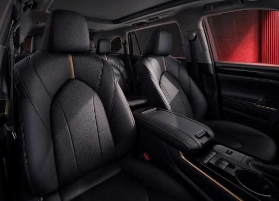 全新第四代汉兰达骑士版在前格栅、前后包围、外门把手、尾部车标、车顶行李架等多处都采用了更具高级感的钢琴黑色,搭配酷黑阵列式LED前大灯,以及20英寸钢琴黑铝合金轮毂,让整车在外观上更具视觉冲击力。内饰方面,配备骑士版专属的高级真皮+合成皮座椅,搭配铂青铜色饰条和缝线,中控饰条采用斑驳金属风格设计,充分彰显汉兰达骑士版车主的专属身份。