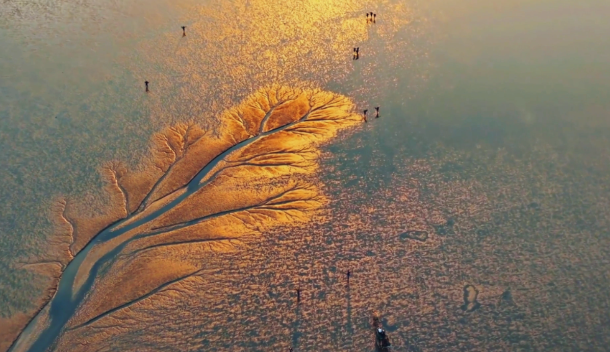 “长”在潮滩上的“树”,启东海岸线出现“潮汐树”奇观
