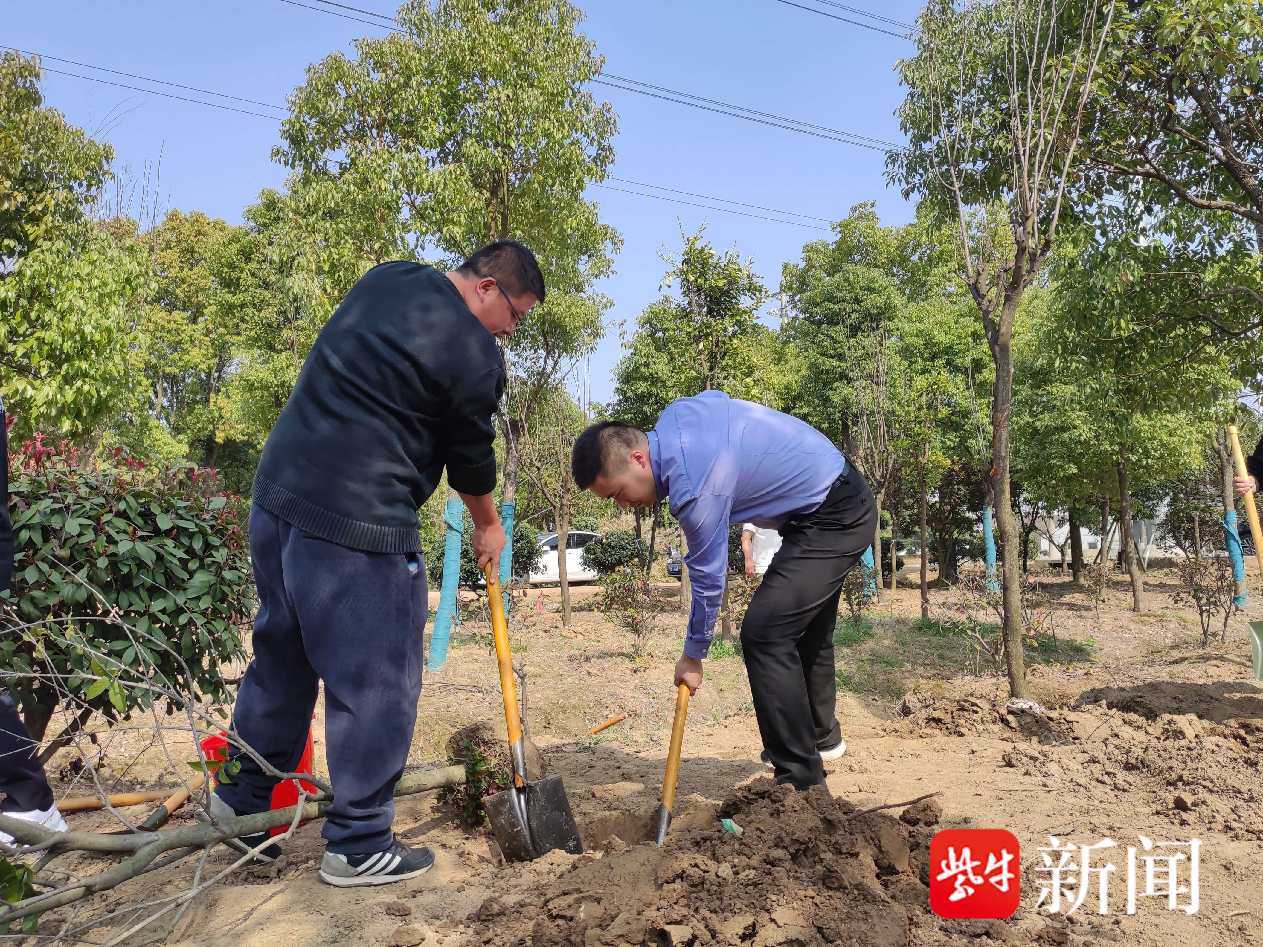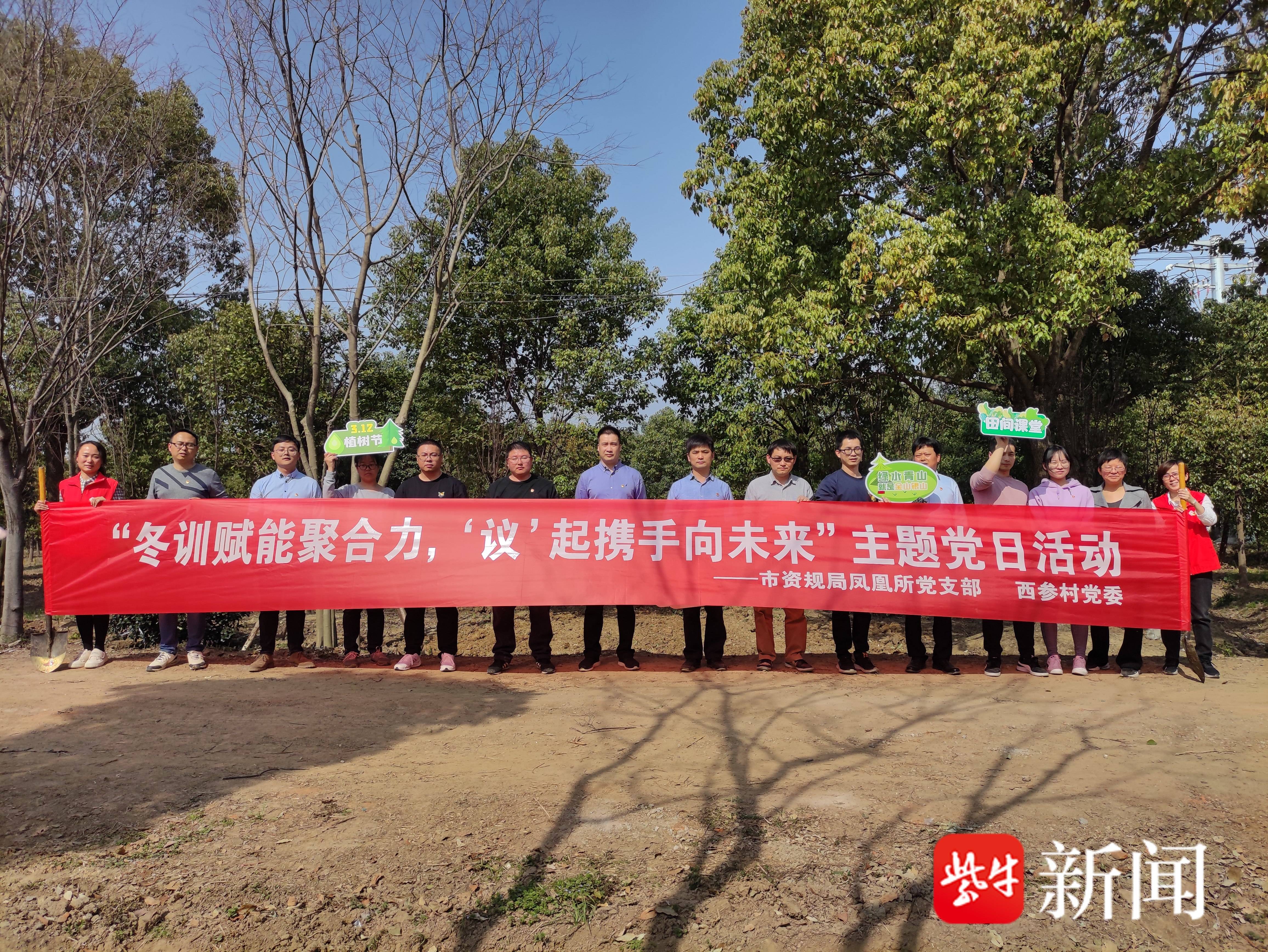 活动伊始,党员们齐聚凤凰镇西参村植树现场,经专业技术人员指导培训后,大家两人一组分工明确,挥锹铲土、扶枝正苗、回填平整、提水浇灌,一气呵成,每道工序都认真细致、一丝不苟,现场一派繁忙有序、热火朝天的劳动景象。在大家的齐心协力下,一株株新栽种的树苗傲然挺立,焕发出勃勃生机。随后,在现场开展“田间课堂”,宣讲耕地保护政策,讨论勾画西参村美丽乡村建设蓝图,探索乡村振兴绿色之路。
