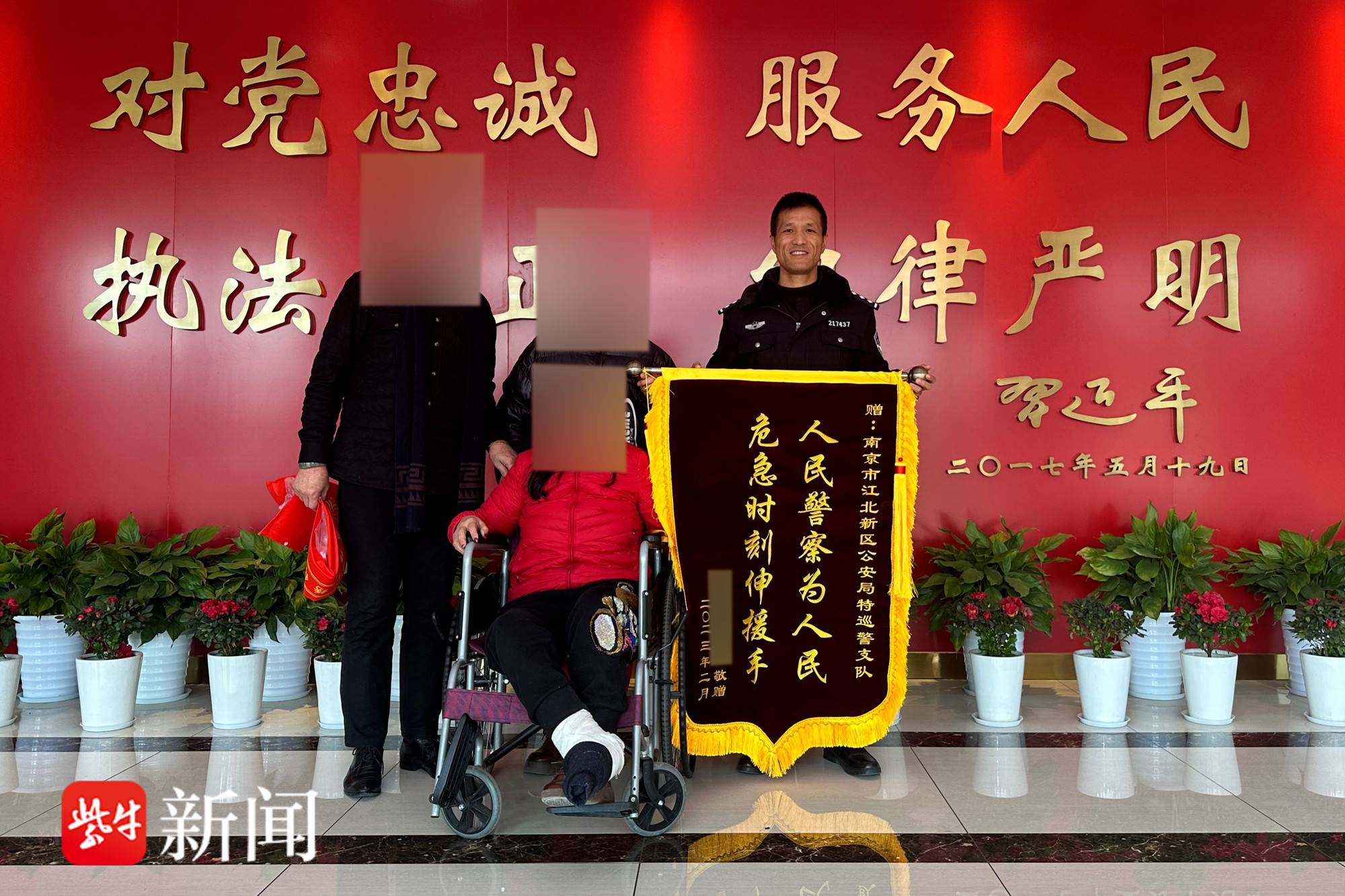 “当时也没问小伙子是哪个单位的,我们找了好久。现在特地来感谢你们队伍里这么优秀的小伙子,想真诚地向他说一句谢谢!”汪女士说,他是几经辗转打听,终于得知背他的小伙是江北新区公安分局特巡警支队二大队辅警,便特意带着锦旗赶来致谢。据介绍,当时为配合景区游人疏导与安全,江北新区公安分局特巡警支队被抽调部分警力,分别配置到景区协助执勤,这也是汪女士一时难以找到帮助她的小伙的原因。