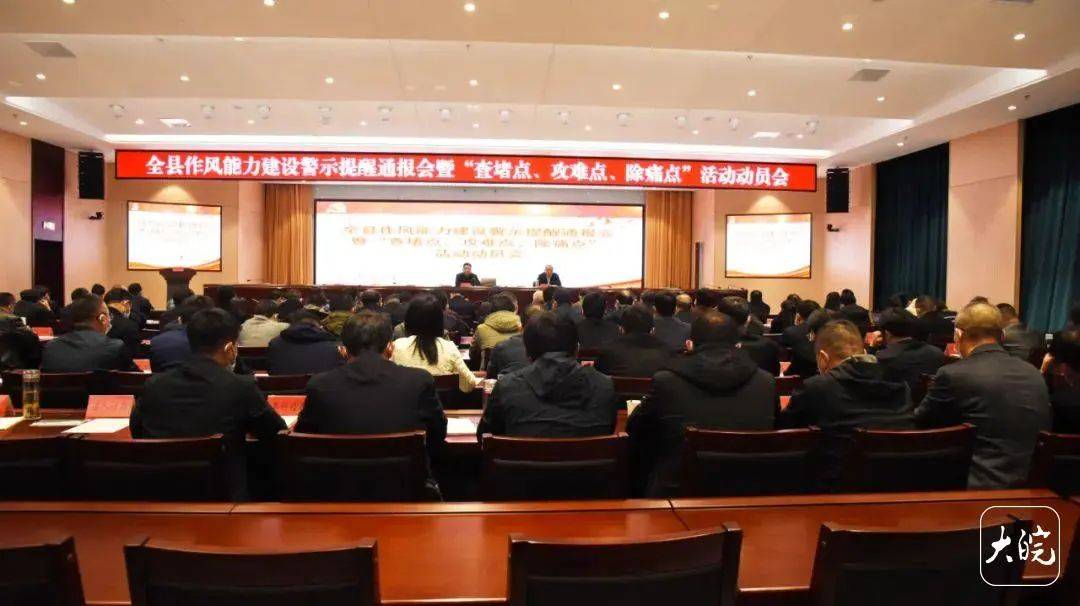 澎湃新闻记者注意到,安徽省池州市东至县融媒体中心旗下“今日东至”微信公众号消息,3月22日下午,东至县全县作风能力建设警示提醒通报会暨“查堵点、攻难点、除痛点”活动动员会召开。县委书记洪克峰出席并讲话。县委副书记、县长唐礼虎主持。县人大常委会主任叶云生,县政协主席张宗发,县委副书记程良才等县四套班子领导出席。
