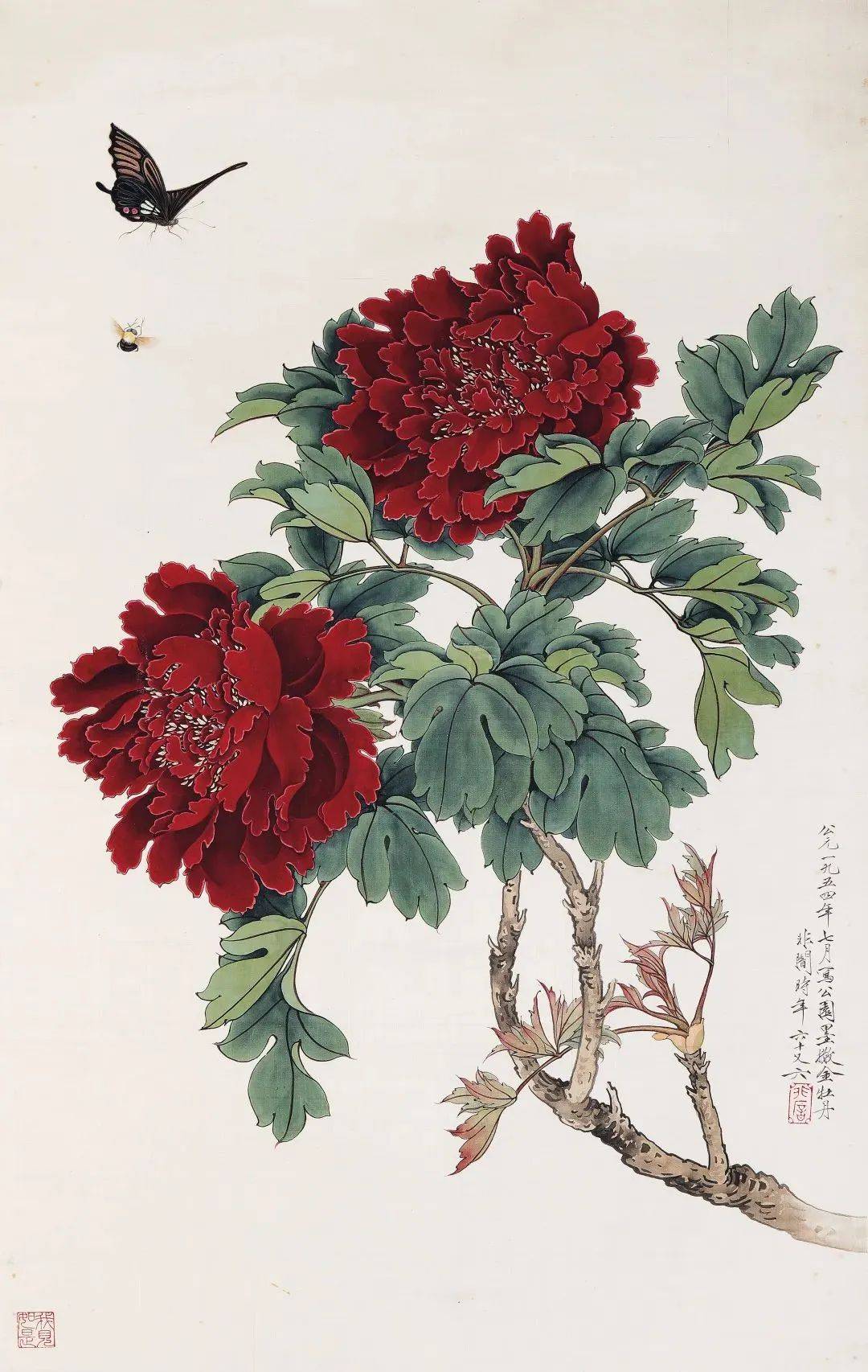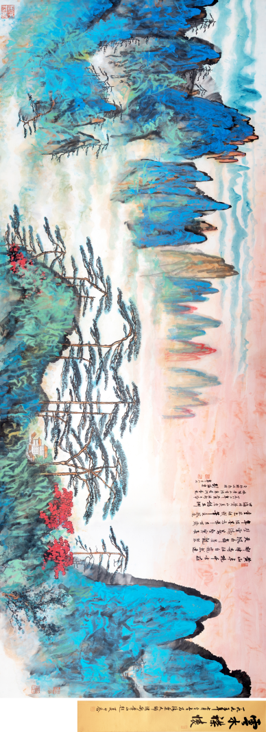 于非闇 牡丹蝴蝶 设色绢本 镜框 尺 寸: 80×49.5 cm 年 代:1954年作 款 识:公元一九五四年七月写公园墨撒金牡丹。非闇时年六十又六。 钤 印:非闇、我见如是 出 版: 1.《中国好丹青·大师条幅精品複制:于非闇》,开明出版社2016年出版 2.《妙机其微——现当代中国工笔画大展》,保利艺术博物馆,2012年。 展 览:“妙机其微——现当代中国工笔画大展”,保利艺术博物馆,2012年11月13日。 说 明:藏家购自嘉德1995年5月9日春拍,lot336。 RMB: 3,500,000-4,500,000 于非闇 《牡丹蝴蝶》 出版物封面 《牡丹蝴蝶》作于1954年,为于非闇工笔花鸟创作走向成熟阶段的一件重要作品。于非闇长居京城,秉承宋人写实传统,以工致的院体绘画为粉本,对景写生,工笔花鸟的摹写达到形神兼备之境。《牡丹蝴蝶》描绘了骄人红艷的牡丹花盛开争芳的景象,叶子青翠,枝干上的嫩芽流露出淡淡的微红,蝴蝶和蜜蜂蜂拥而至亦为画面增添了几许生机和活力。 刘海粟 黄山千古 设色纸本 镜片 尺 寸:193×505 cm 年 代:1982年作 款 识:黄山卓绝千古在,郁伟奇壮自巍然,连天风雨舞苍龙,裂壁云涛万壑寒,长年泼墨忘年月,百岁重临亦壮哉,笔底风流四海传,黄山美名播五洲。一九八二年五月泼彩巨纸,忆写黄山旧游,应星洲艺苑之约,特此为赠,刘海粟年方八七。 钤 印:刘海粟印、心迹双清、曾经沧海、笔歌墨舞、海粟长寿、刘海粟留真迹与人间垂千古 题 跋:云水襟怀,一九九五年七月二十五日,为海粟大师泼彩黄山题,夏伊乔。钤印:艺海棠、夏伊乔 出 版: 1《艺海长存艺术大师刘海粟中国画作品精选》,新加坡星洲艺苑,1996年3月出版,P154-155。 2.《中国画坛巨匠刘海粟》,西泠印社(国际)出版社,2018年出版,P154-155。 3.《纪念艺术大师刘海粟逝世25週年 刘海粟-中国画作品珍藏集》,浙江人民美术出版社,2018 年出版,P108-109。 4.《艺术大师刘海粟》,上海人民美术出版社,2019年出版,P270-271。 RMB:8,000,000-12,000,000 刘海粟 《黄山千古》 出版物封面 从1918年至1988年,刘海粟十上黄山,从“昔日黄山是我师”,到“今日黄山是我友”,黄山见证了刘海粟波澜壮阔的艺术人生。《黄山千古》无论从尺幅还是作品重要程度都无疑是本场拍卖的另一大亮点,此画作于1982年五月,刘海粟先生时年87岁,正是准备九上黄山的前夕。《黄山千古》大气磅礡的泼彩泼墨,创造出在画史上从未有过的瑰丽境界。作品以「骨法用笔」的中锋线条构建骨骼,用墨或彩泼洒晕染以助韵,笔墨酣畅,气势夺人,真正代表了刘海粟晚年的艺术风格,黄山云海的奇幻变化给画家艺术的灵感,以「不息的变动」创造出无限的新黄山,实现了画家艺术与思想境界的跃进以及画面与自然的融合与辉映。《黄山千古》从九十年代开始,历经多次权威出版。