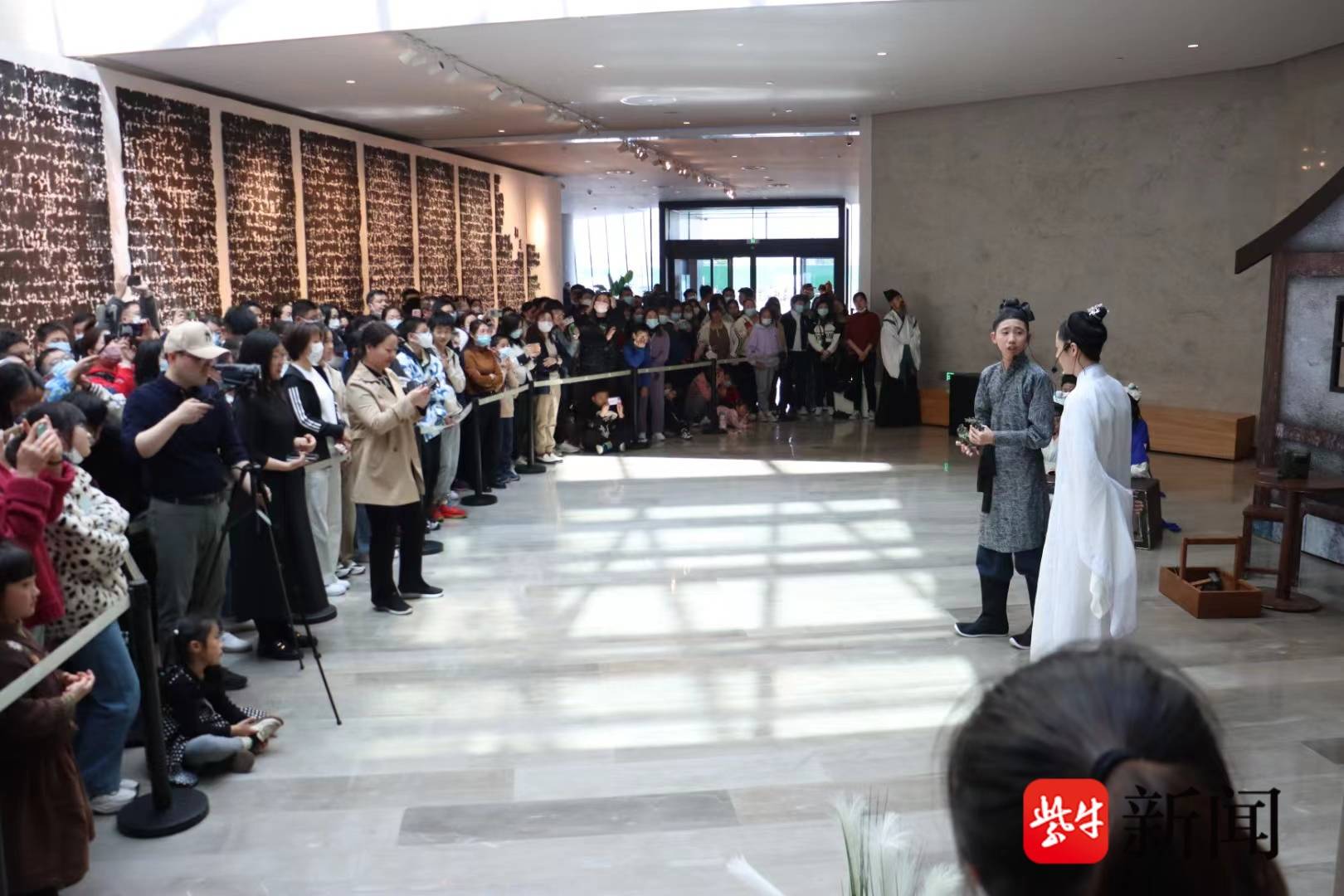 4月2日,吴文化博物馆内上演了一出好戏,一群来自碧波中学凌波戏剧社团的初中生们将吴文化博物馆演绎社原创剧目《寻槎记》进行了改编演出,现场观众热情非凡,有超过五百余名观众预约观演。 “寻槎”寻的是吴文化博物馆镇馆之宝元代朱碧山造银槎杯,话剧怎样演绎国宝文物?吴文化博物馆事业发展部主管李爽和碧波中学教师蒋老师接受了扬子晚报|紫牛新闻记者采访。