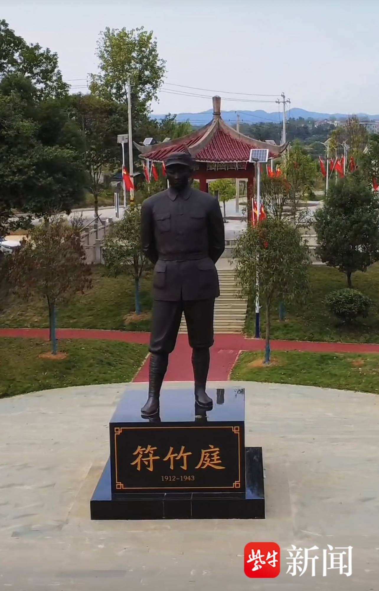 抗日山第五坡段庄重肃穆的六角墓亭,那是滨海军区政委符竹庭之墓。墓亭南面镶着他的铜像,那是战士们用30多公斤子弹壳铸成的。1942年抗日烈士纪念塔落成时,将军曾说 :“假如有一天我牺牲了,请同志们记住,也要将我安葬在这里!”1943年11月,符竹庭以身殉国,年仅31岁。按照他生前遗愿被安葬在了抗日山。