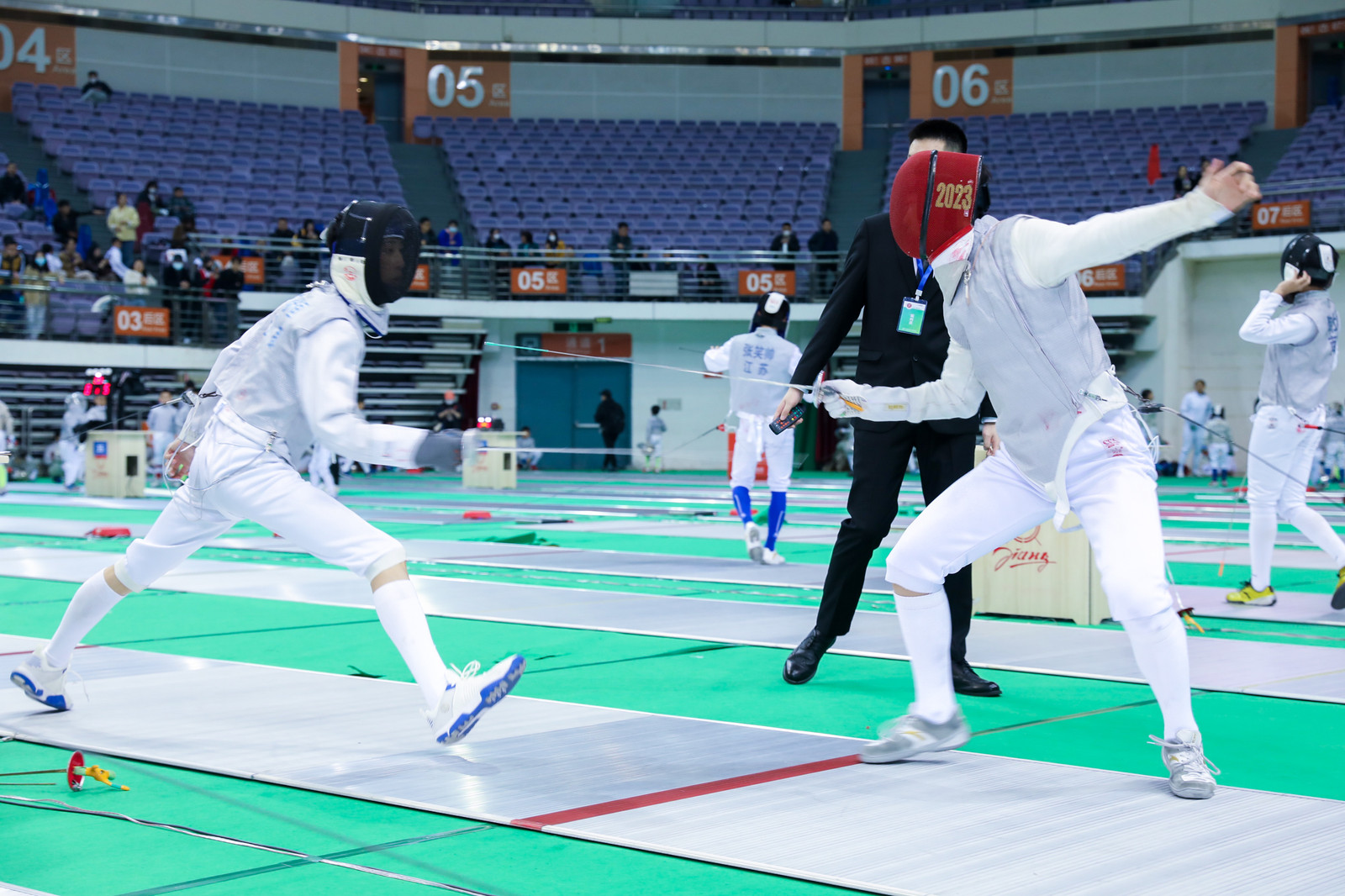 4月8日,2023年江苏省青少年击剑俱乐部联赛(南京建邺站)暨江苏省(第三届)中小学生击剑联赛在南京奥体中心开赛。
