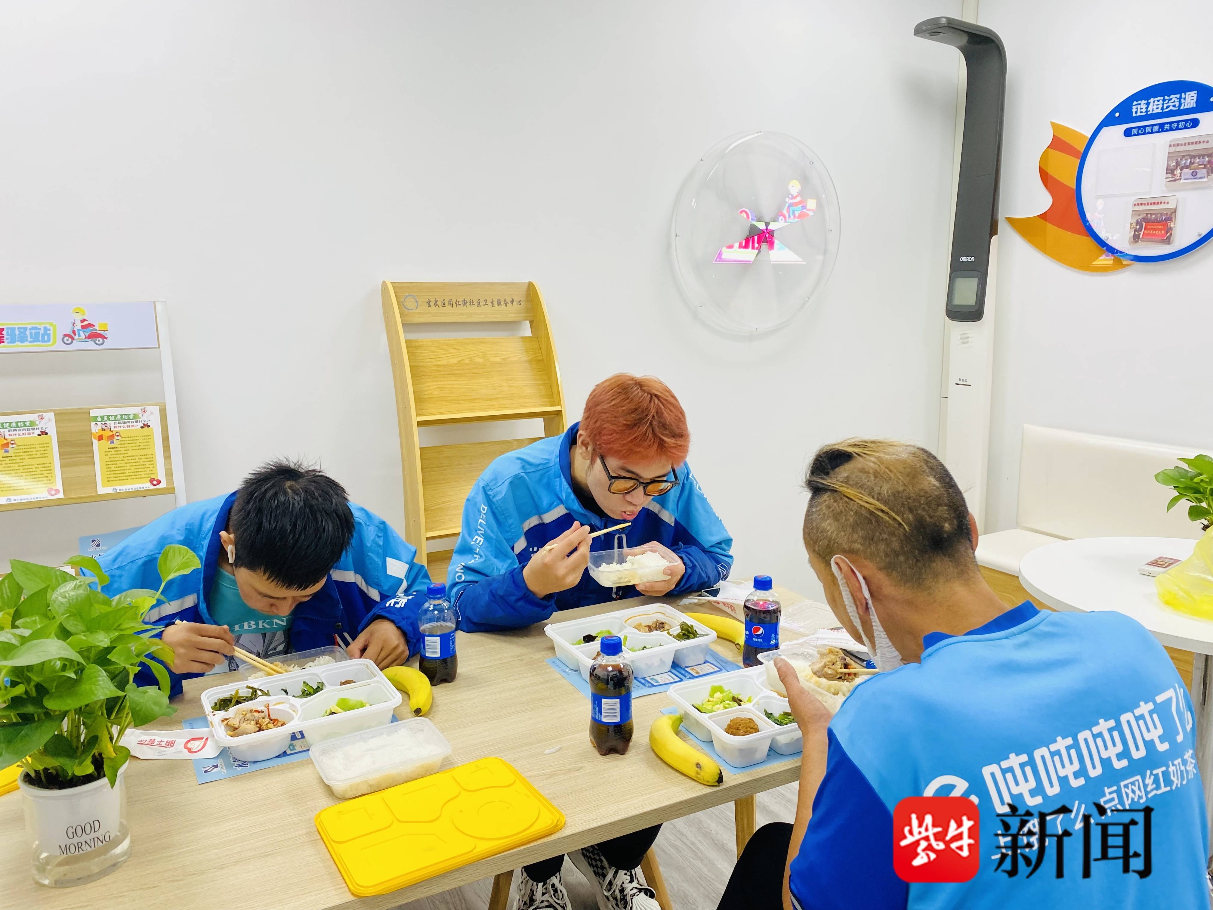 “跑累了,可以进门歇一歇。”每天来义务值守的北门桥社区居民陈老先生告诉记者,驿站服务包括“爱心午餐”、“为爱圆梦”,“小蜂筑巢”和“一声问候”。目前已吸引50多位快递、外卖小哥入驻。在这里,骑手们可以对电瓶车、手机充电,可以休憩就餐,接受就业指导、子女托管等便捷服务。还可以根据服务排班接受医疗义诊、法律援助、心理咨询、政策咨询等公益服务。