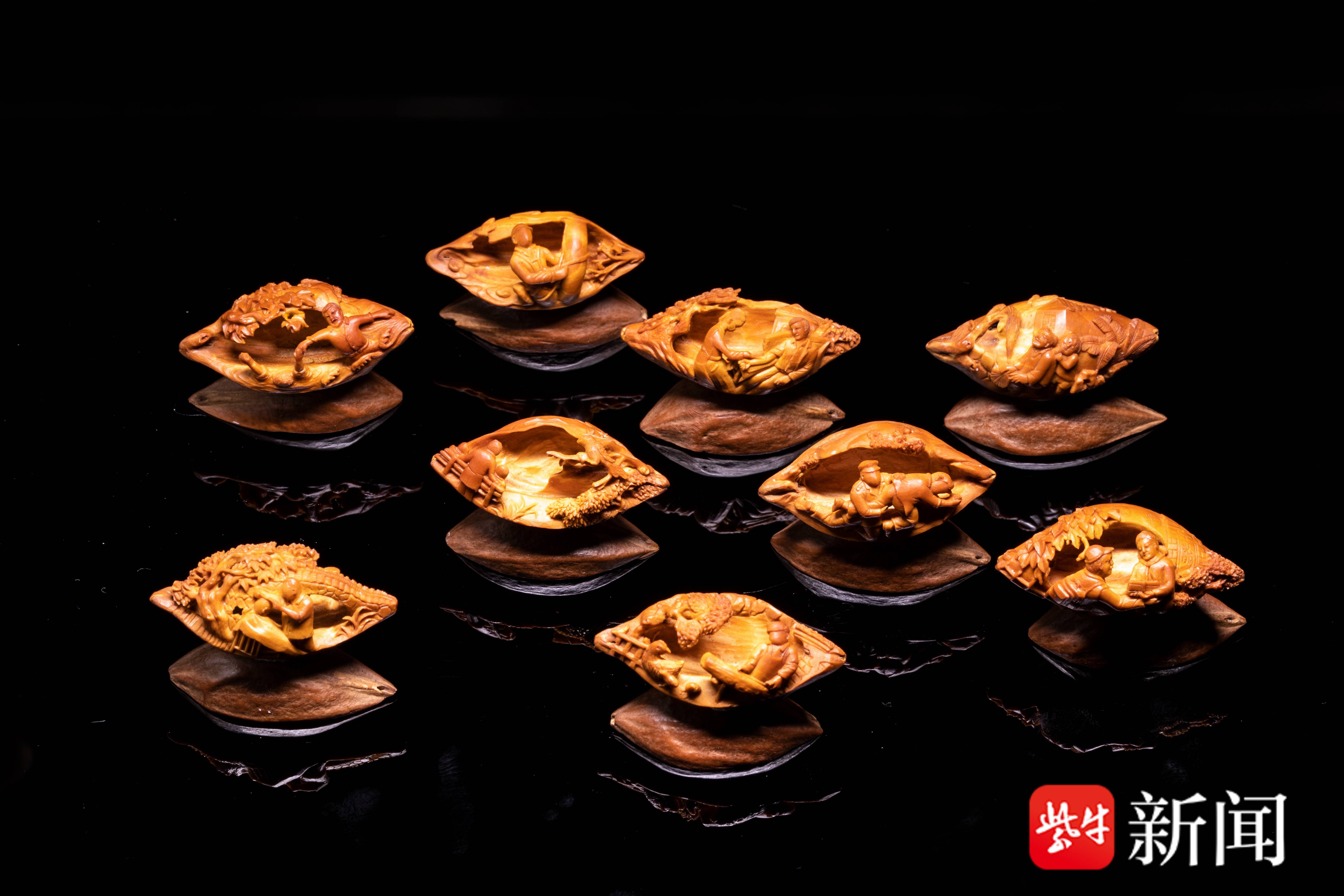“我19岁开始学习红木雕刻,31岁改为核雕,12年红木雕刻基础让我做核雕在技艺上得心应手。”1976年出生的陆小琴也是非物质文化遗产(光福核雕)代表性传承人、江苏省工艺美术大师,她花了三年多时间自创的“光影核雕”技艺获得了江苏省的科研项目,这是历来传统民间工艺唯一获得的科研项目。正是敢于不断突破与尝试的勇气,让她从木雕转行到核雕后,仅仅花了7年就获得了“山花奖”。