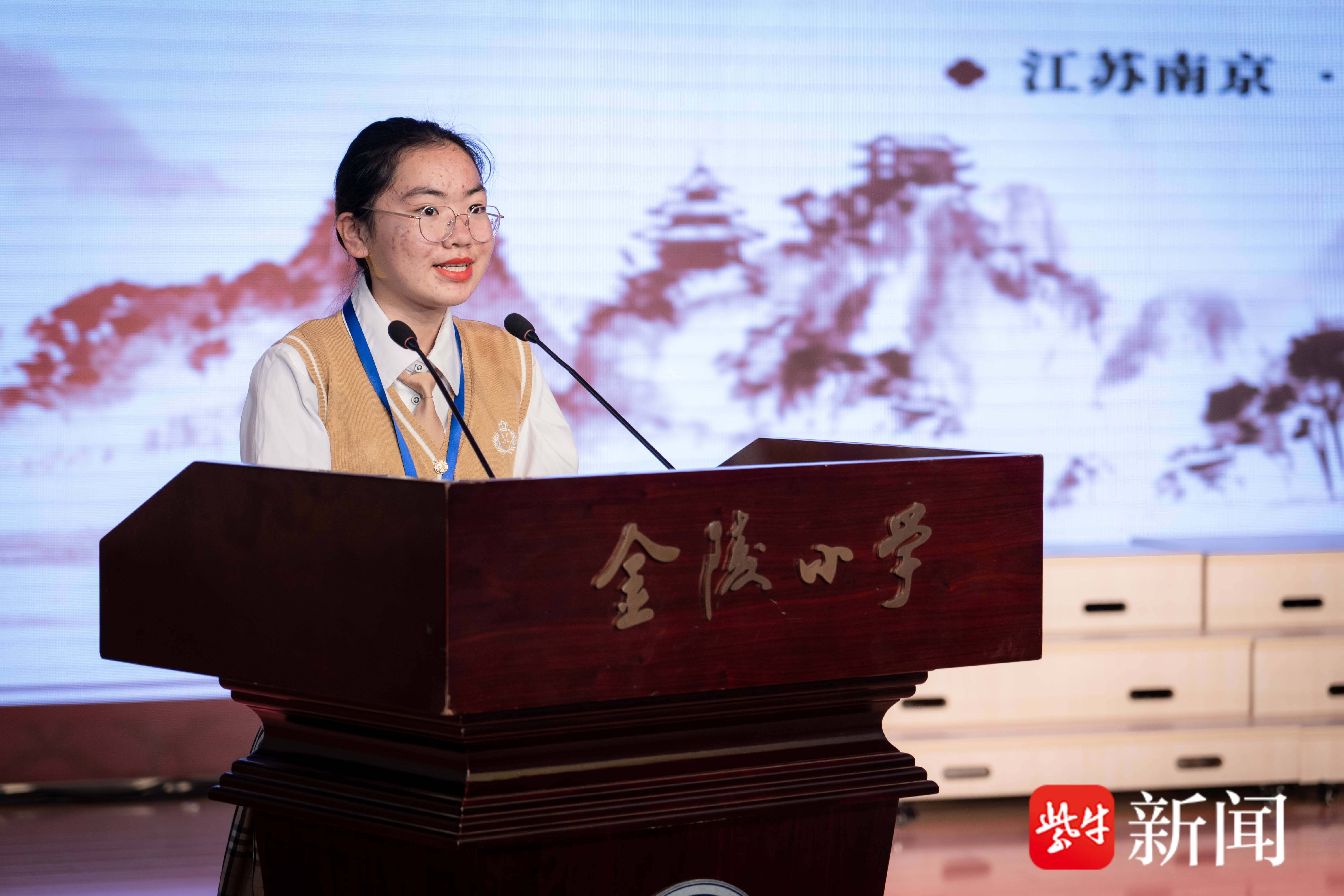 “春衣少年当酒歌,起舞四顾以笑和。在我的校园里,有一架紫藤花廊,花开时有如瀑的盛景,又如淡紫色的梦境,每逢从花架前走过,鼻尖便嗅到它的芬芳,淡雅幽香。诗歌予我,便是如紫藤那般优雅神秘的存在。” 初中组“诗歌之星”获奖代表、南通市育才中学吴雅楠在发言时表示,“我将永远怀着满架的诗意和期待,永远充满好奇地张望这神秘的世界,永远热情,永远年轻,永远怀有善意。我将撷满身的诗意勇往直前,在自然的叶脉与天地间,远赴盛大的理想宴会。”