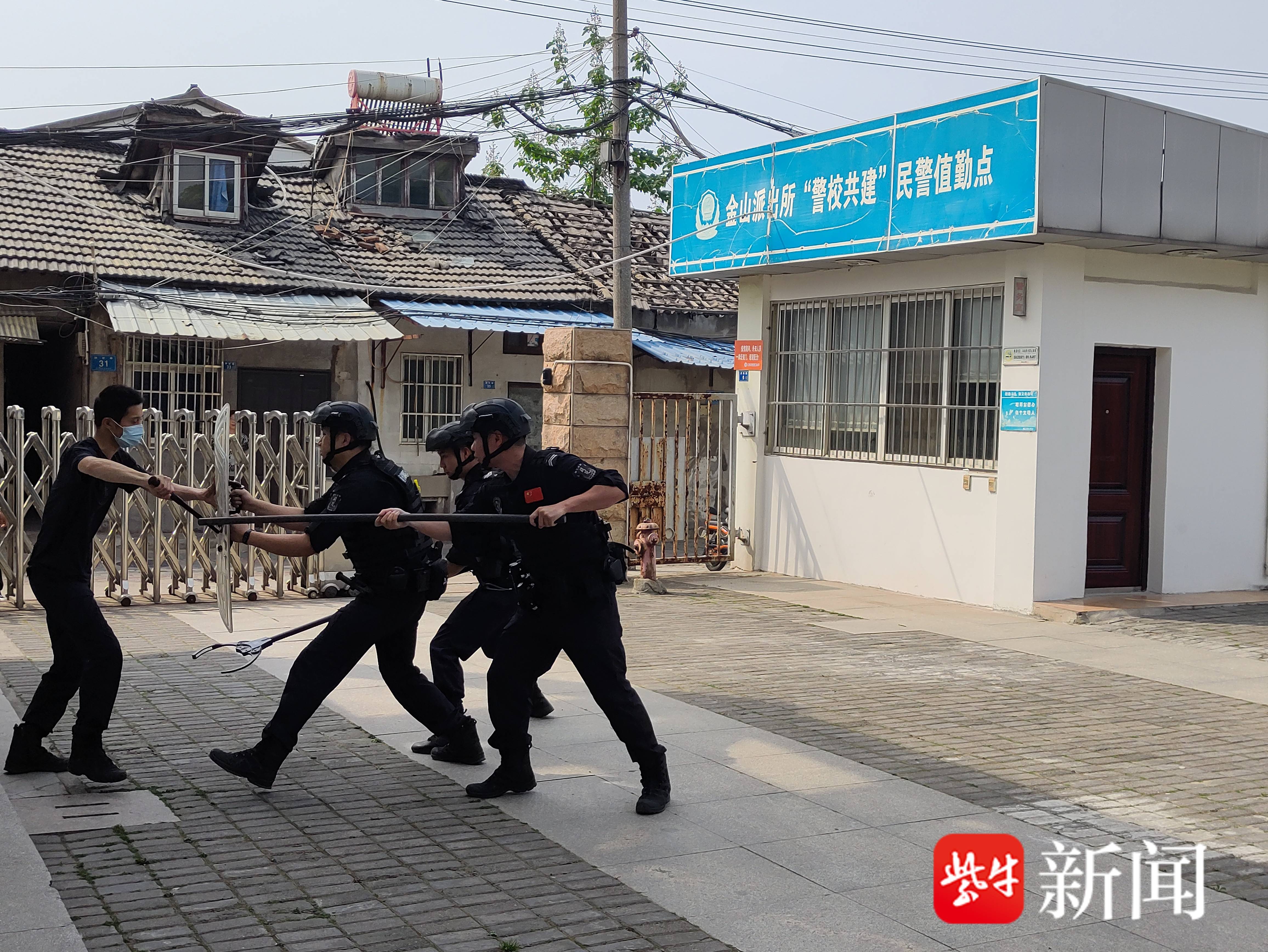 扬子晚报网4月18日讯(通讯员 赵雪茹 记者 万凌云)4月18日下午,镇江市公安局润州分局金山派出所联合巡特警大队,走进辖区宝塔路小学开展防恐防暴演练活动。