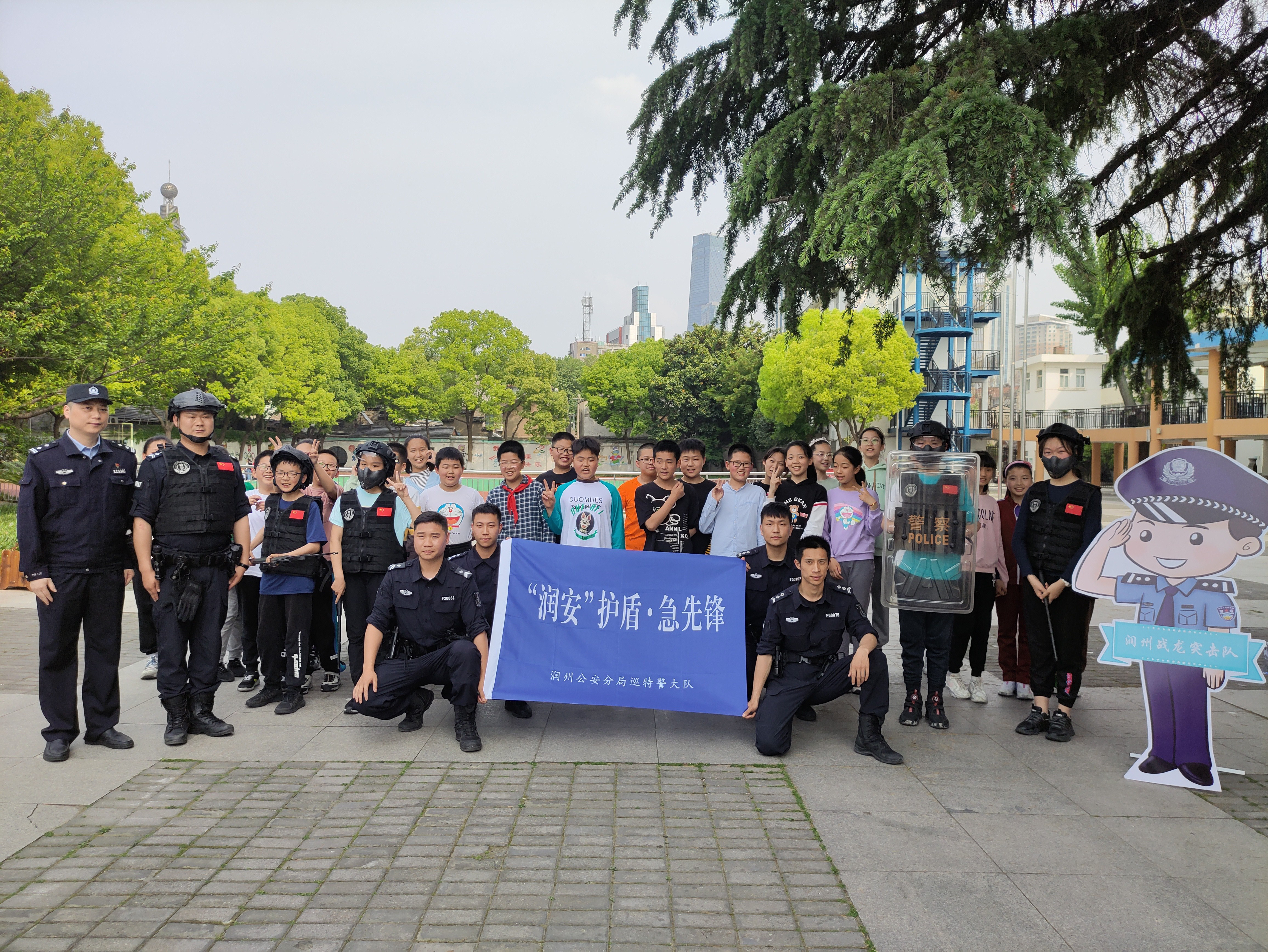 演练结束后,孩子们争先恐后地戴上防暴头盔、穿上防刺背心,手持防暴盾牌和抓捕叉,互动体验。特警队员详细讲解了警用装备的使用方法,以及队员之间的协作配合技巧。同时,指导保安队员正确掌握各类防护器械的使用方法,并围绕此类突发事件的危害、逃生原理和技巧,进行安全知识宣讲,告诉师生在遇到突发事件时如何做到合理有序疏散,保护自身安全。