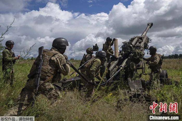 资料图:2022年7月14日,乌克兰军人准备在哈尔科夫地区使用美国提供的M777榴弹炮向俄罗斯阵地开火。