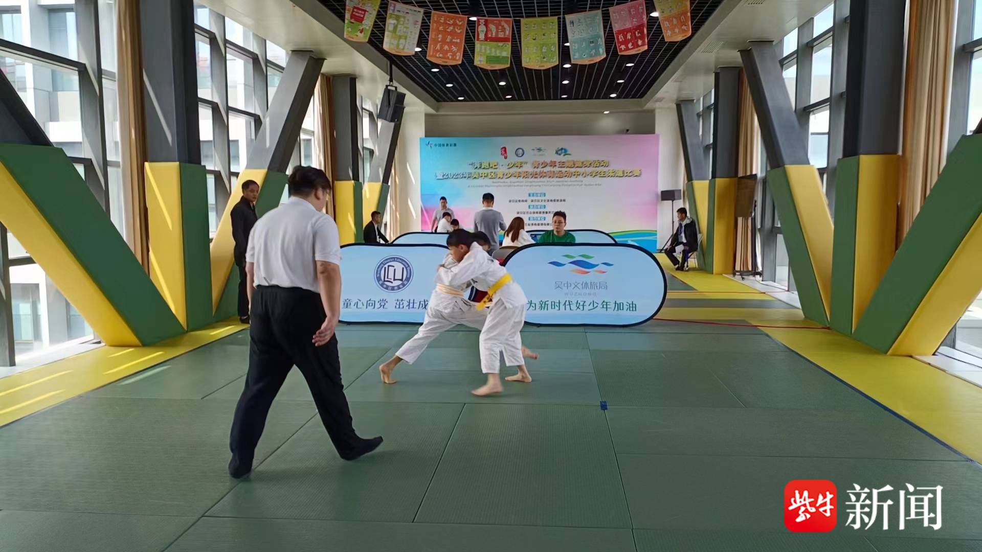 4月22日,“奔跑吧·少年”青少年主题健身活动暨2023年苏州吴中区青少年阳光体育运动中小学生柔道比赛在吴中区现代文体中心嘭嘭柔道馆举行。