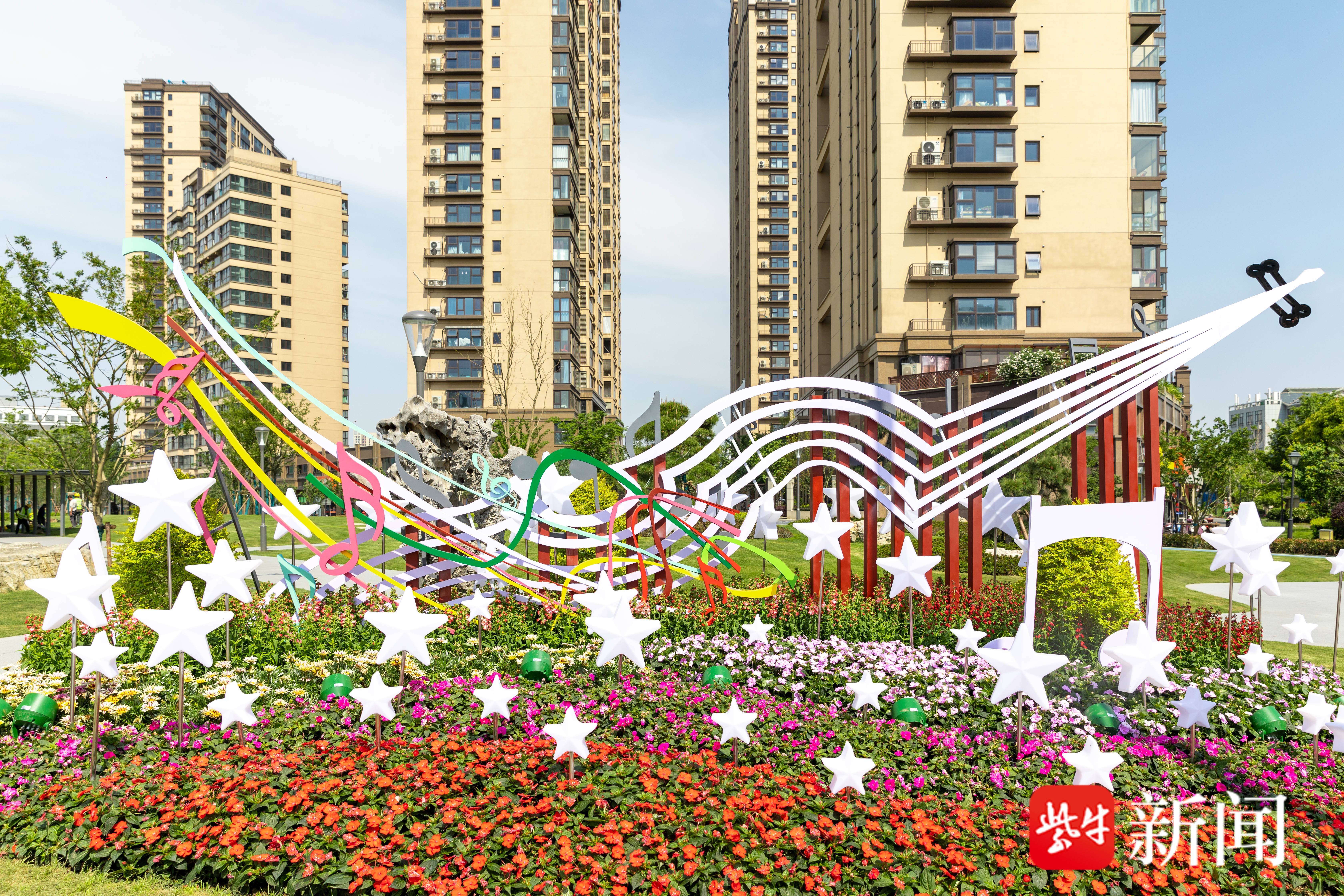 通扬路与太湖大道交叉口:以时令草花布置,整个绿地呈现扇形形态,展示“律动梁溪”主题。