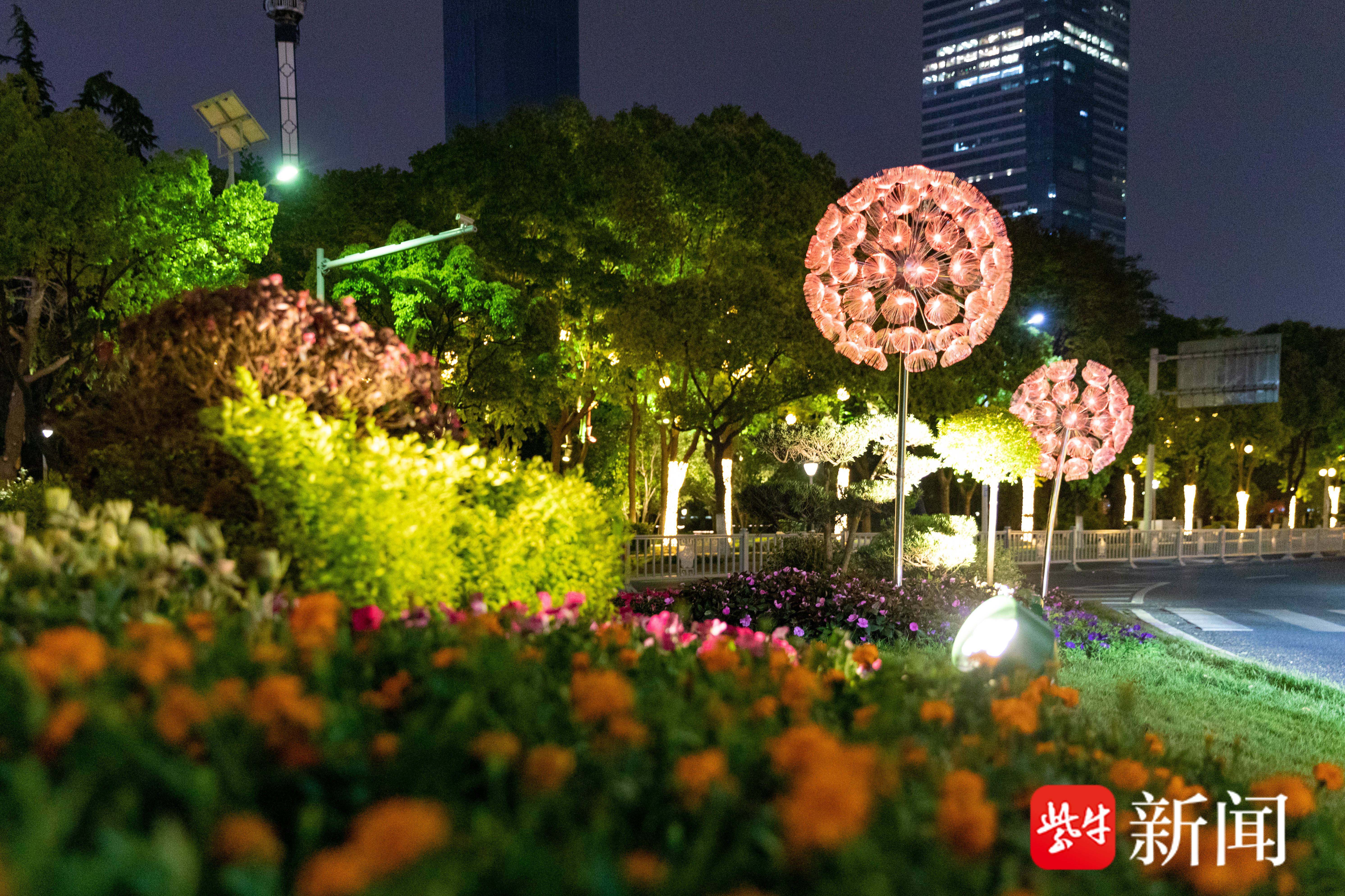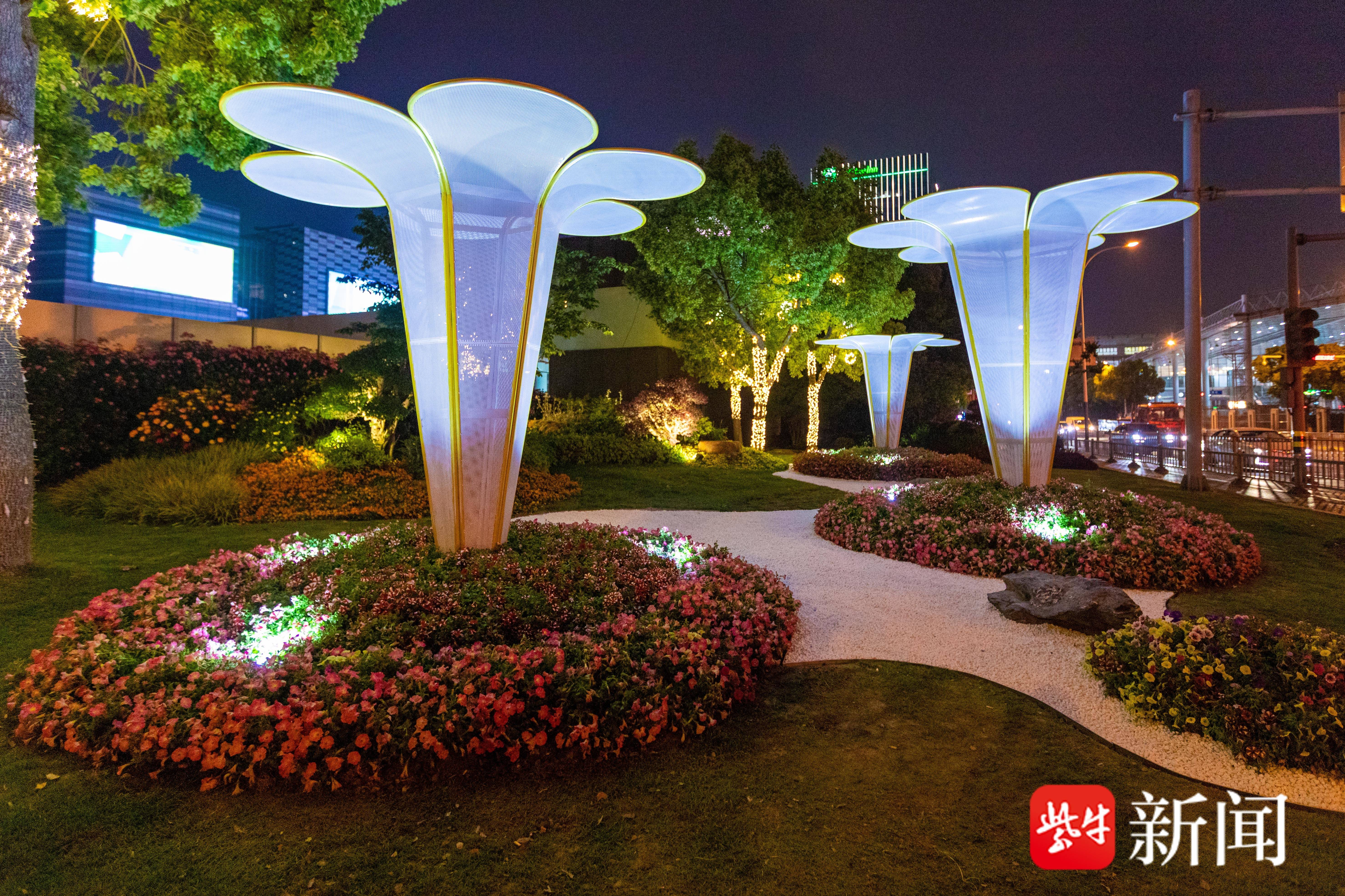 兴昌路与惠勤路东北角:大面积草坪组团花境及绿化背景,设计增加花朵形大灯柱,形成主题景观,面积约150㎡,打造靓丽节日景点。 (梁城)