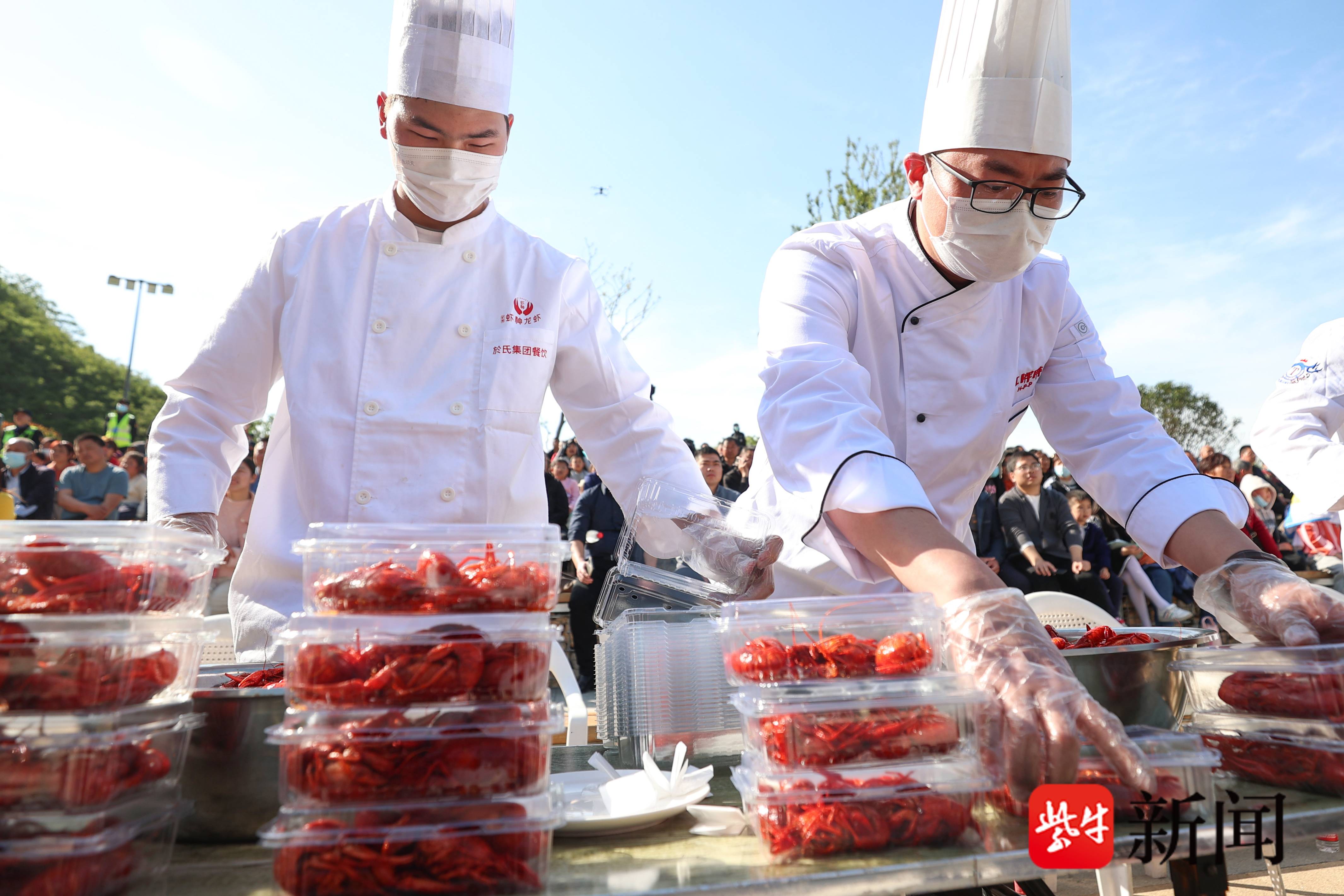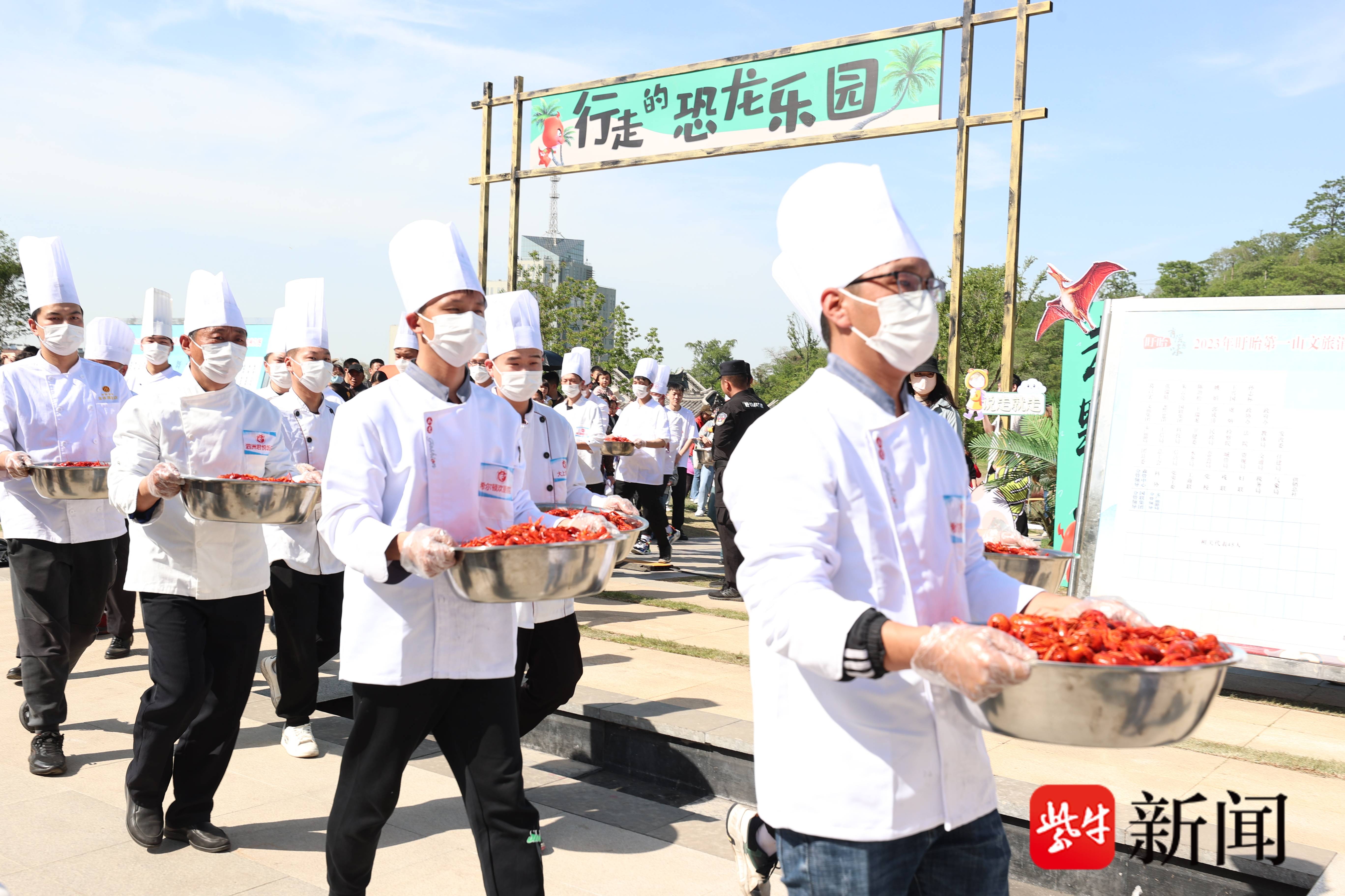 4月29日,在江苏盱眙第一山历史文化街区举办的“2023年第一山文旅消费季”活动上,由23家烹饪名厨进行现场烹制,每家100只,总计约2300只龙虾现场香飘四溢,“舌尖上的美味”盱眙龙虾挑起了市民和游客们的味蕾。