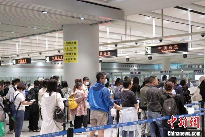 图为人潮涌动的河口口岸。河口边检站供图