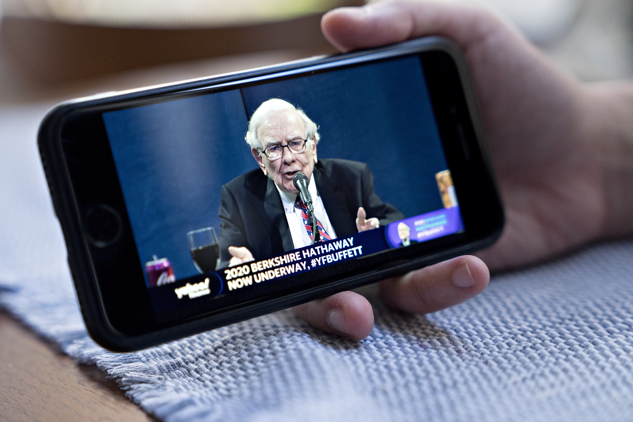 投资者在观看在线召开的巴菲特股东大会。 视觉中国
