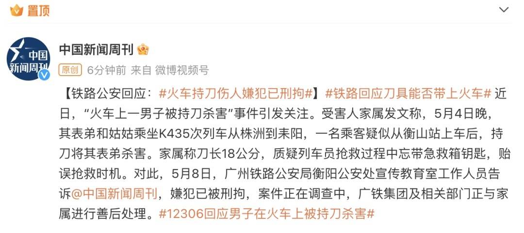近日,有网友发布视频称,5月4日晚K435次列车上一男子被人持刀杀害。