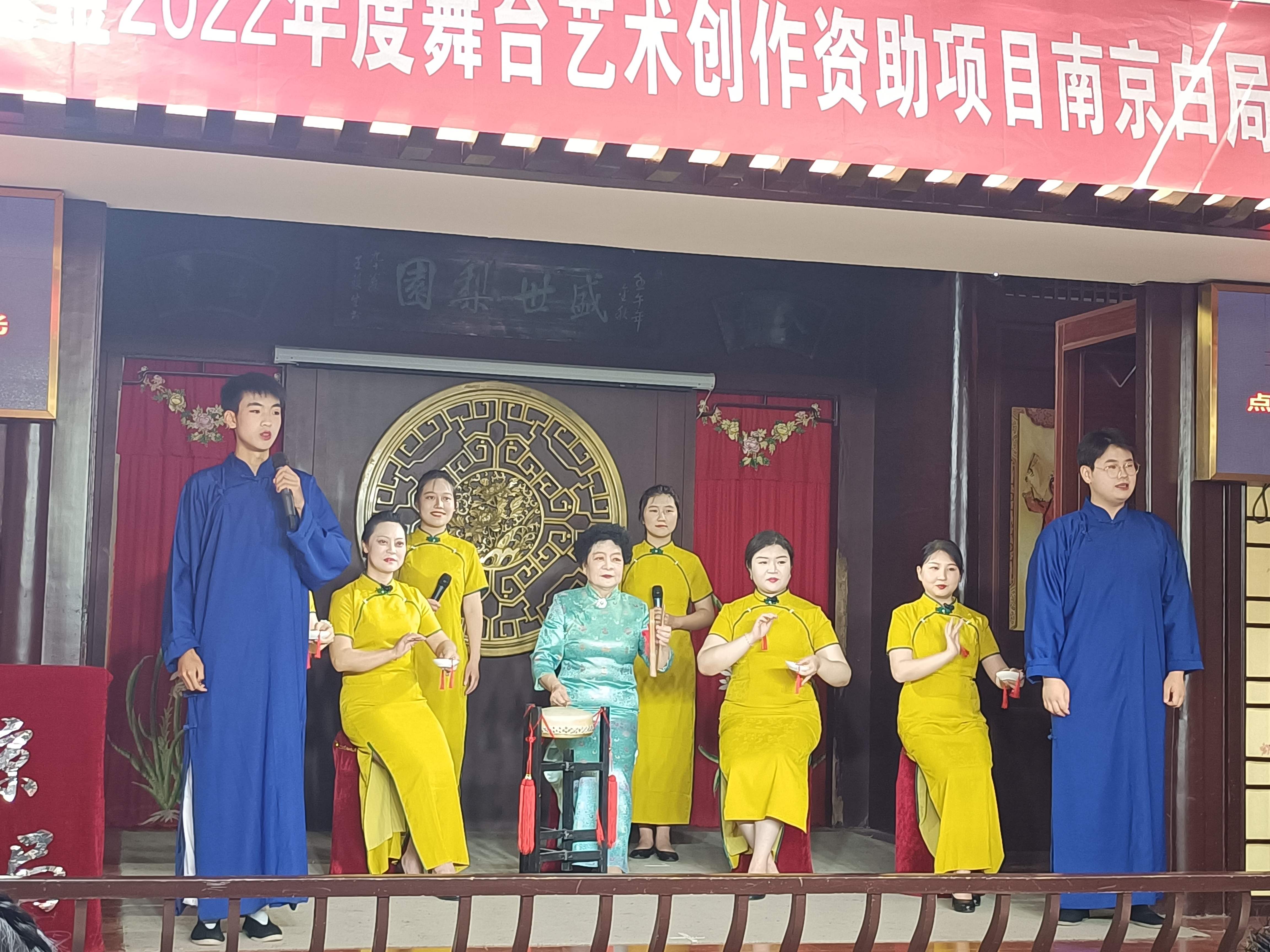 作为南京唯一的方言说唱艺术,南京白局用原汁原味的南京话说唱故事,被称为老南京的“方言仓库”,至今已有数百年历史。5月11日,由南京金陵风白局曲艺团承办的南京艺术基金2023年度资助项目南京白局《百年华诞颂党恩》在甘熙故居茶馆首演。