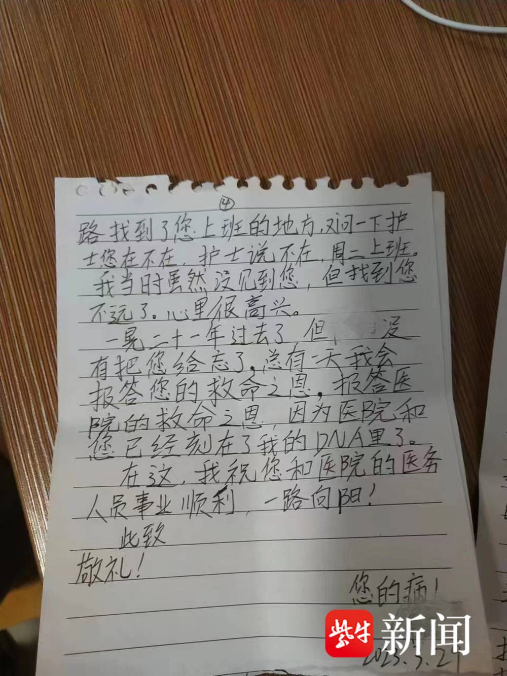 今年3月29日,他曾来医院寻找过李炳主任,不巧的是,李主任当天没有上班,虽然没有见面,但是他还是很高兴,觉得两人相距不远了,那次回去后,他还特意手写了一封感谢信。