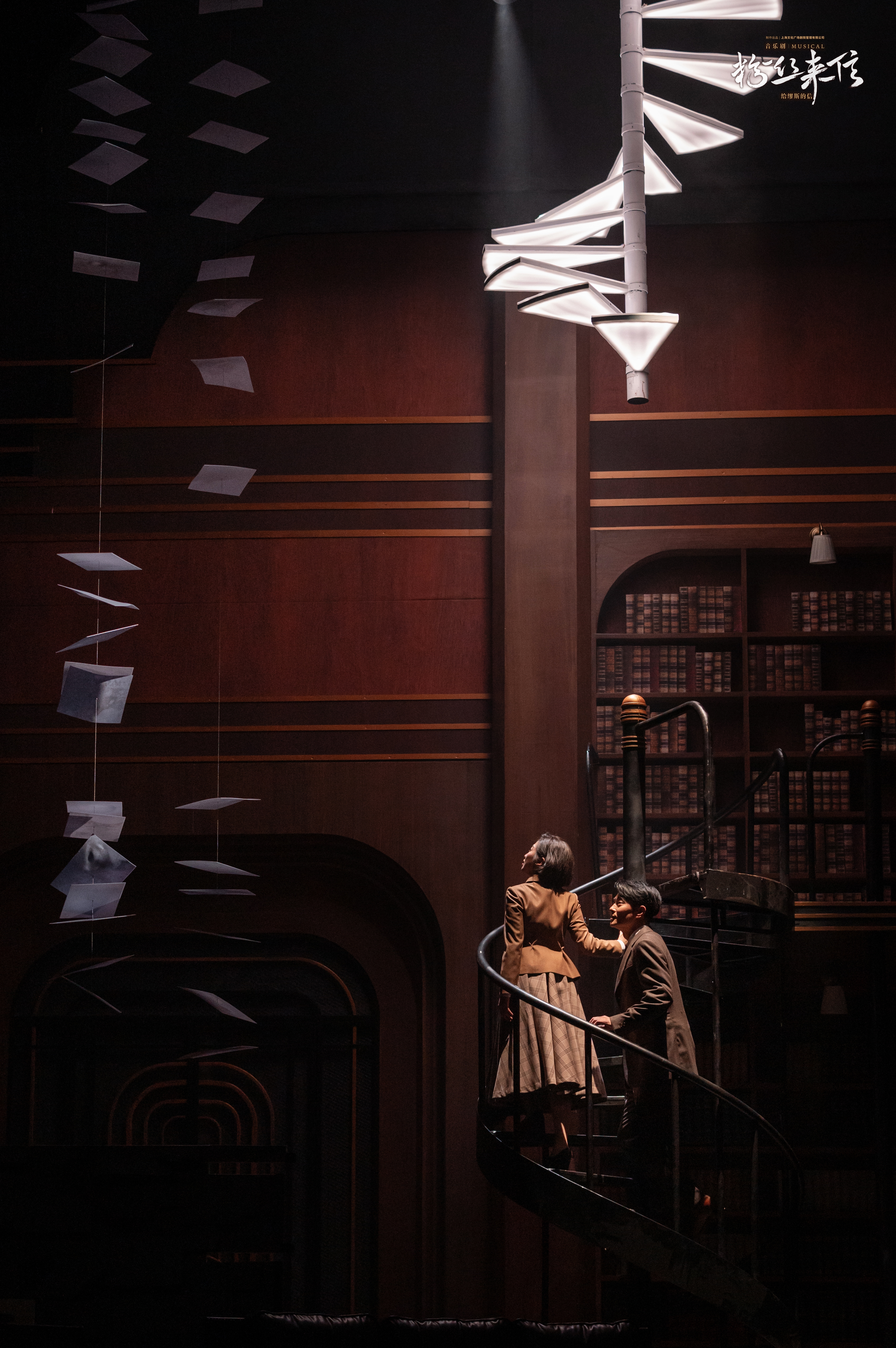 音乐剧《粉丝来信》的舞台设计相对更侧重于叙事。而剧中许多富有魔力的场景,都是舞美设计徐肖寰查阅了无数的书面资料,以及与其他主创反复调试后的成果。无论是象征当时天地的萧瑟黑暗还是代表回忆世界入口的窗户,或是用纷纷飘洒的稿纸象征写作空间的崩塌,它们都在舞台上共同推动着故事的发展。
