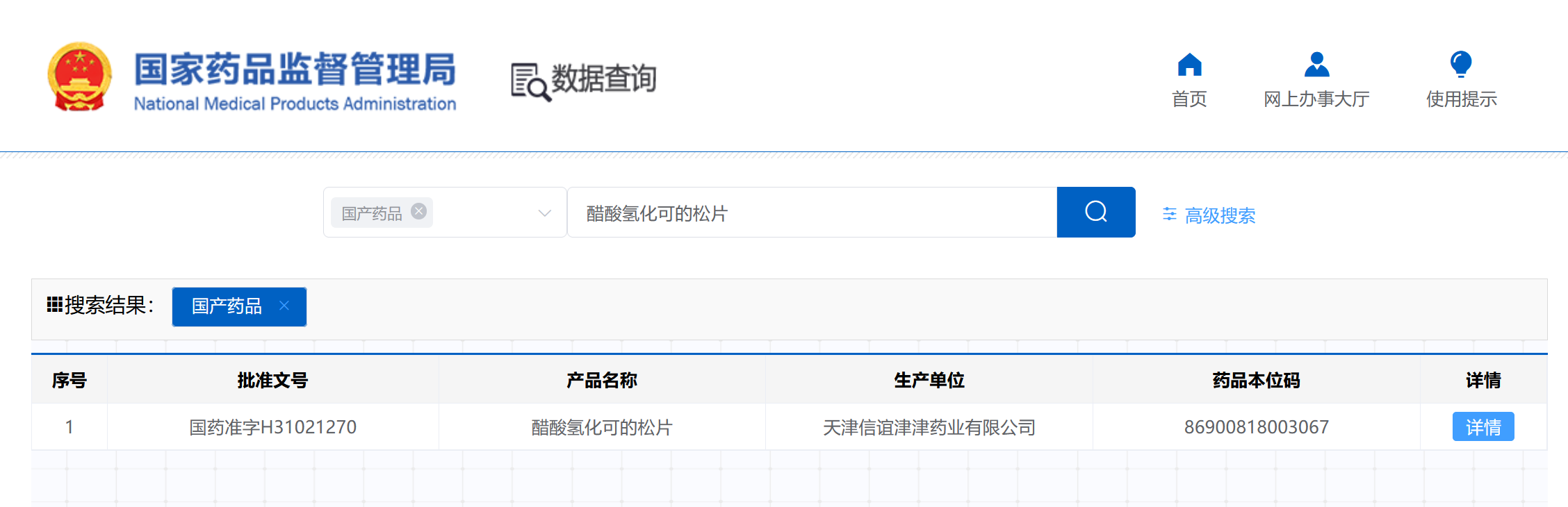 醋酸氢化可的松片已被列为医保甲类药品。图片来源:国家医保服务平台